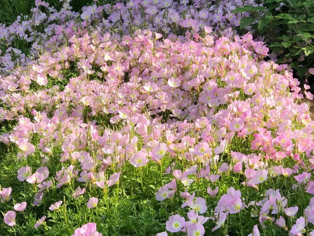 形似小铃铛的月见草,粉白相间,成片绽放时像一片温柔的海洋,傍晚时分观赏最佳,风里都是淡淡的清香,治愈又舒服。