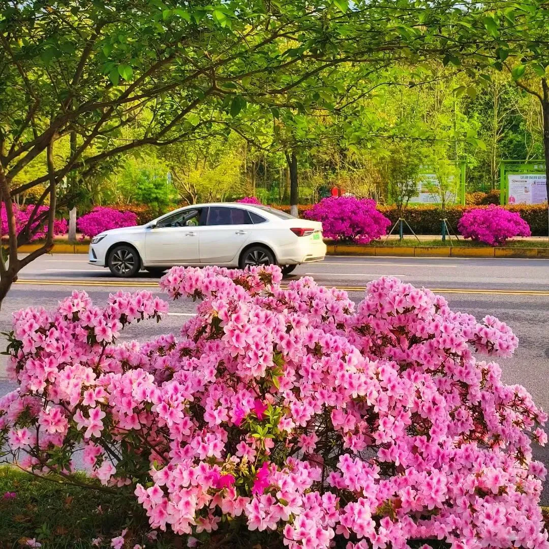 红的似火、粉的如霞,杜鹃花热烈又鲜艳,不管是路边还是山间,一丛丛绽放,充满了春日的生机,看着就让人心情舒畅。