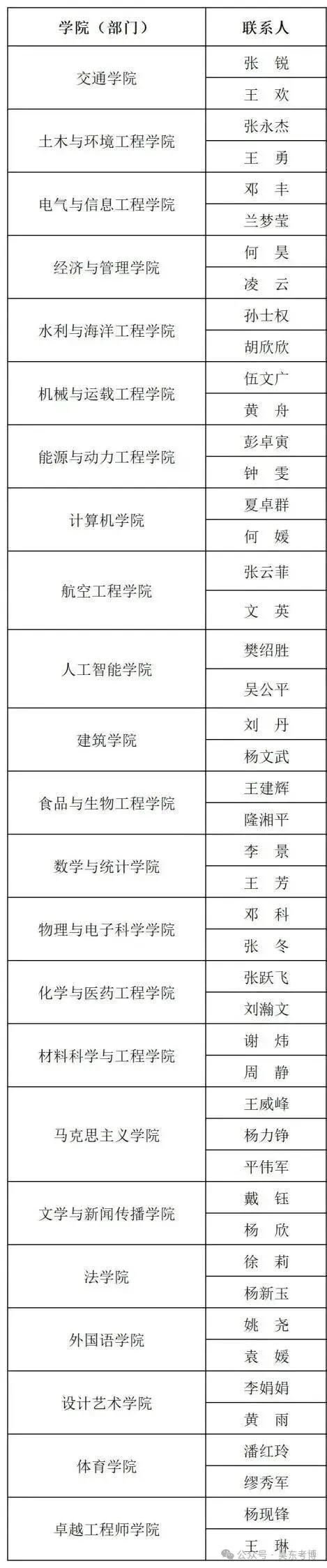 五、各学院(部门)联系人