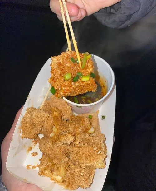 春天的时候正是吃臭豆腐的好季节,黑色经典算是长沙臭豆腐的代表了。外酥里嫩,一口咬下去外皮焦脆,里面软嫩多汁,配上他们家特制的辣椒酱和萝卜干,那个味道真是绝了!臭味不会太冲,反而有种特别的香,吃起来咸香微辣,越吃越上瘾。我发现他们家的豆腐炸得特别均匀,每块都是金黄酥脆的。