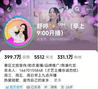 她以“热爱唱歌、宣传家乡”为核心IP,从素人成长为全网千万粉丝的头部主播。