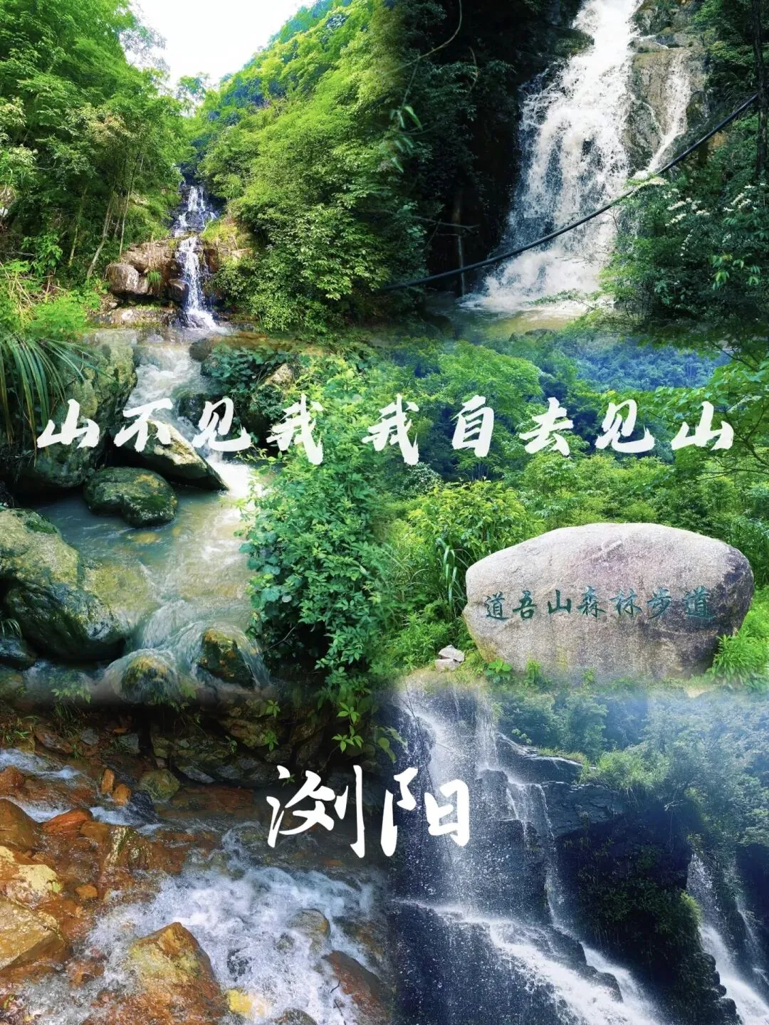 道吾山(浏阳“小庐山”):海拔786.4m,南岳衡山余脉,古浏阳八景“吾山雪霁”所在地,森林覆盖率95%以上,峡谷幽深、溪流纵横、瀑布成群,是长沙周边春季看瀑布首选秘境。 道吾山瀑布群: 道吾山经典8公里环线瀑布群,由上云溪峡谷瀑布、桃花潭叠瀑、老龙潭(龙潭/老潭)大瀑布、桂花潭瀑布四大核心水景串联而成。上云溪瀑布秀美灵动,为环线开篇水景;桃花潭叠瀑气势磅礴,是环线最核心的主瀑群;老龙潭大瀑落差壮观、深潭幽碧,为古浏阳二十四景之一;桂花潭瀑布清幽雅致,紧邻天湖与失马桥 。四瀑环环相扣、各具风姿,全程溪流相伴、绿意环绕,构成道吾山最经典的山野瀑布风光。 引路松·天湖·新华禅寺:千年古松、高山湖泊、古寺禅意,与春日新绿、杜鹃相映成画。第三部分:活动信息