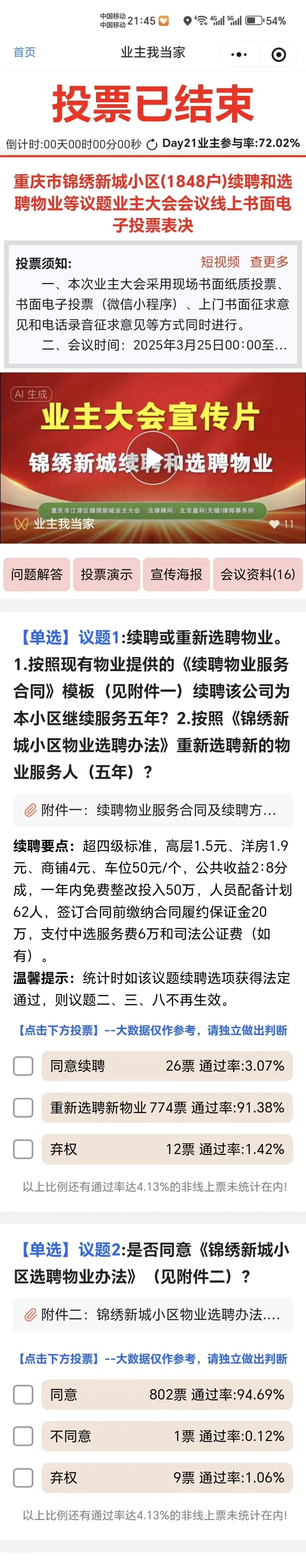 这不仅是一次积极建议,更是一次民主实践的磨合。感谢绝大多数代表的赤诚与负责,对业代表的行权提出了更规范的要求,未来我们将继续以更严谨的标准、更开放的心态,吸纳每一份理性意见,让小区治理工作更加规范透明。谢谢各位!