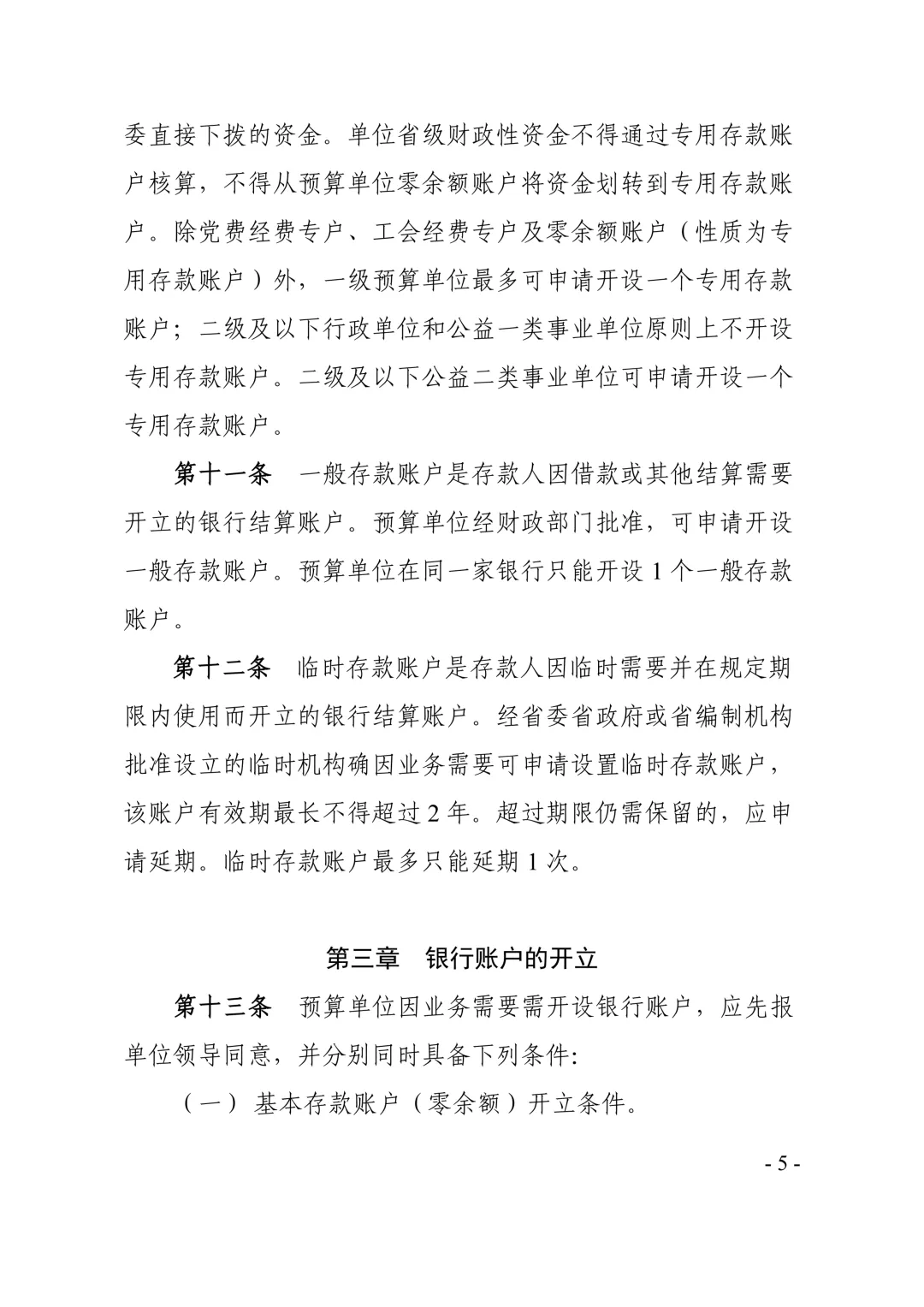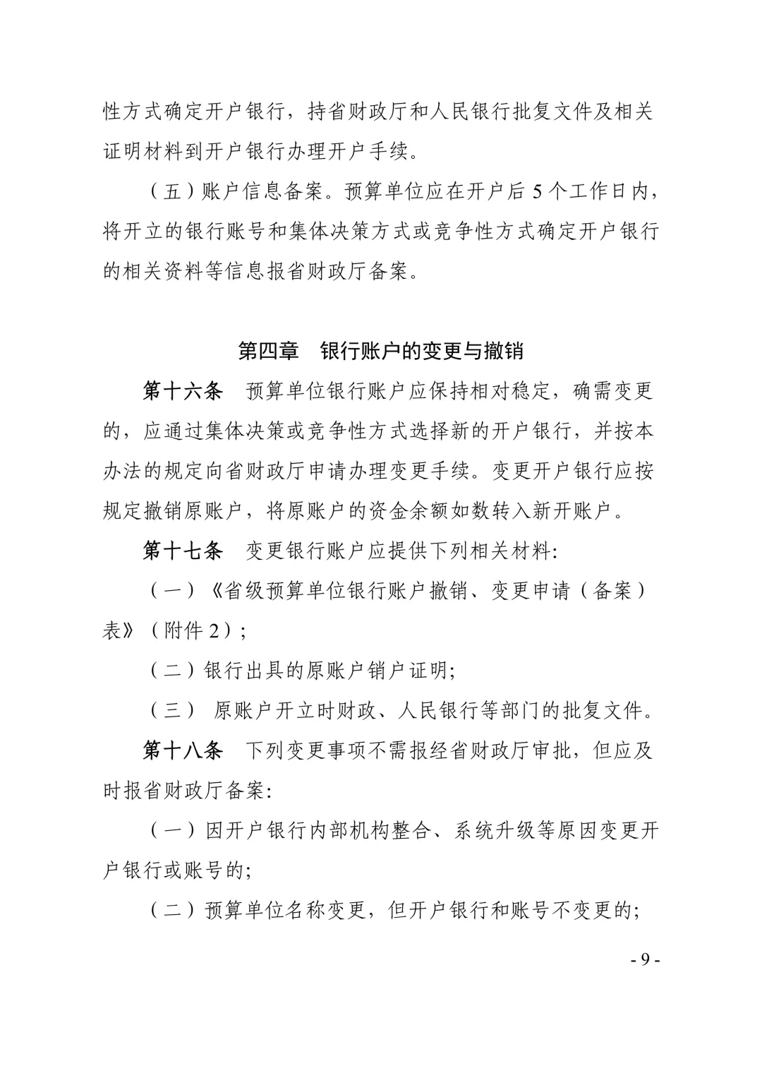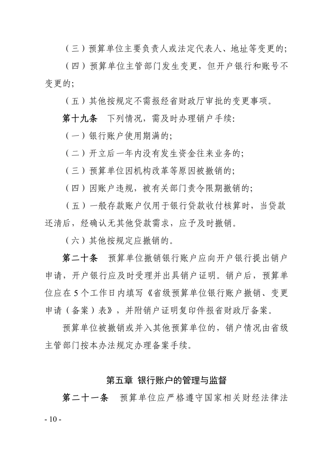 >湖南省财政厅 中国人民银行长沙中心支行关于印发《湖南省省级预算单位银行账户管理办法》的通知(湘财库〔2019〕19号 )