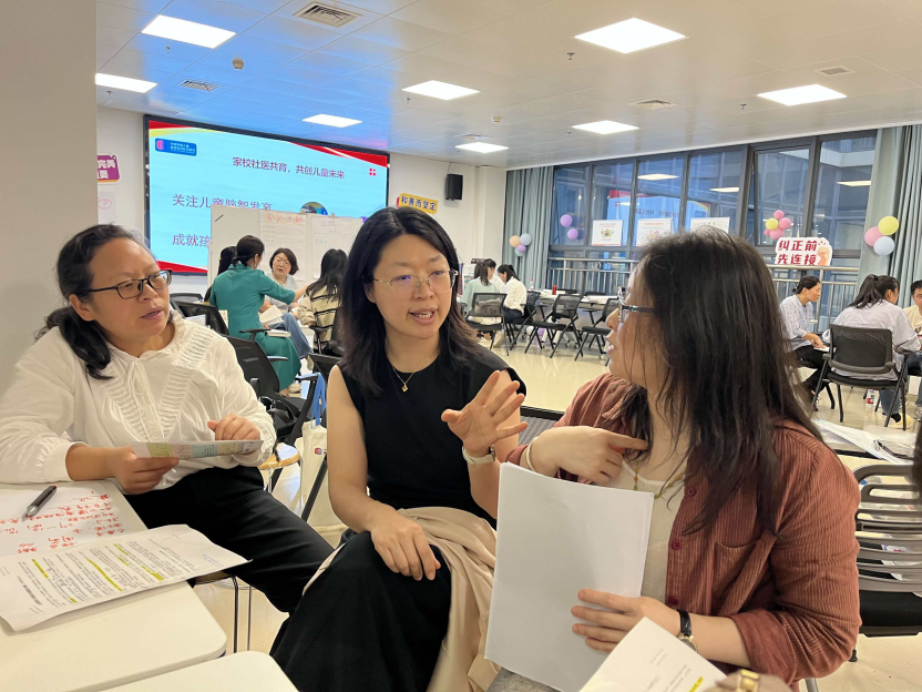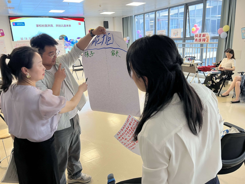 大家在白板上列出当下育儿面临的挑战(如磨蹭、撒谎、情绪失控)以及对孩子未来的品格期望(如自信、负责、合作),通过建立挑战与期望之间的联系,理解每一个“问题行为”背后都可能隐藏着培养优秀品质的机会。现场讨论热烈,老师们纷纷表示这一工具简单直观,极具实用价值。