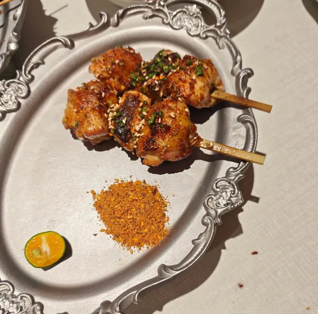 京葱鸡肉串也是绝了!不同于一般鸡肉的柴,此鸡非常Q弹饱满,很入味,非常好吃😋!