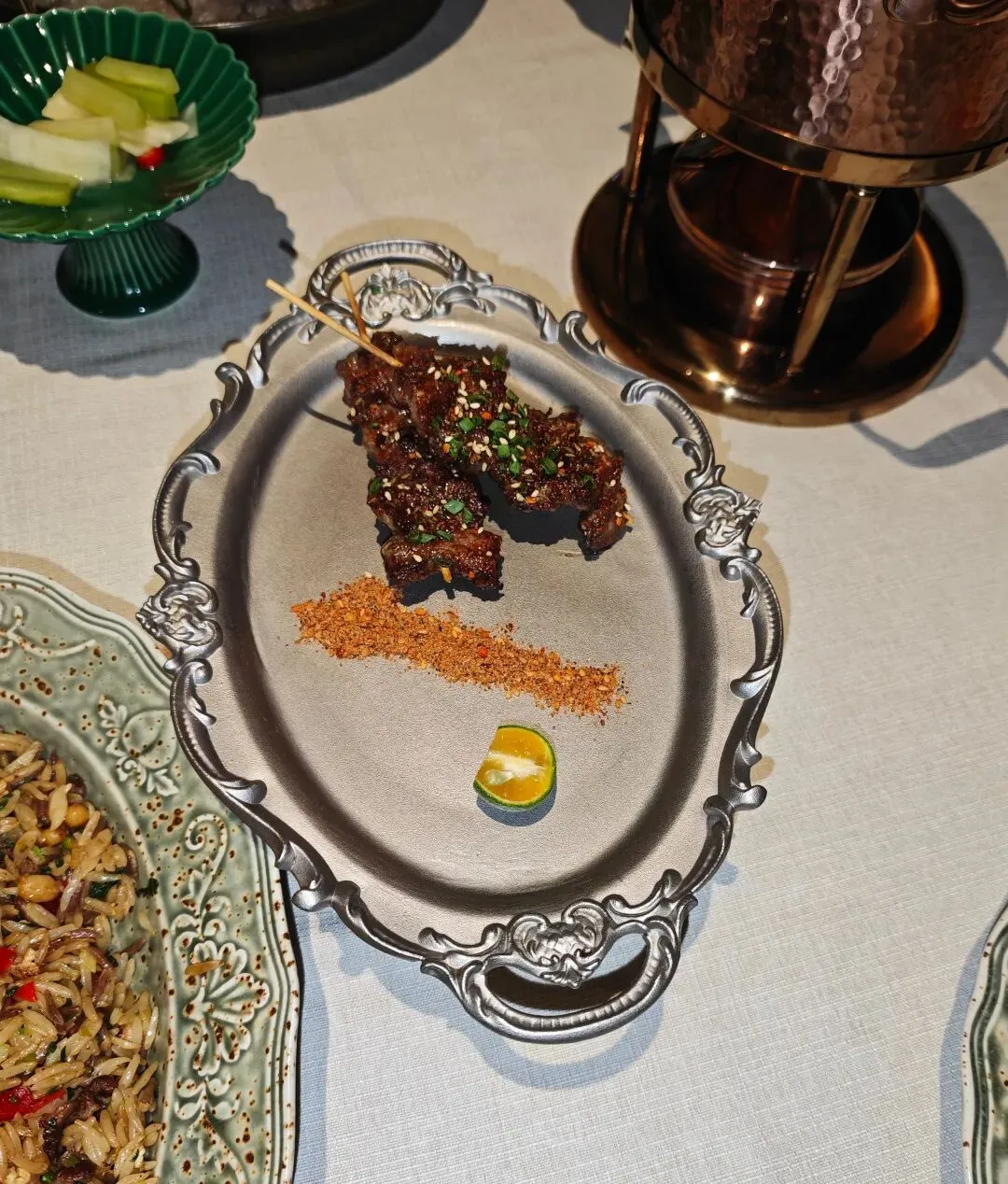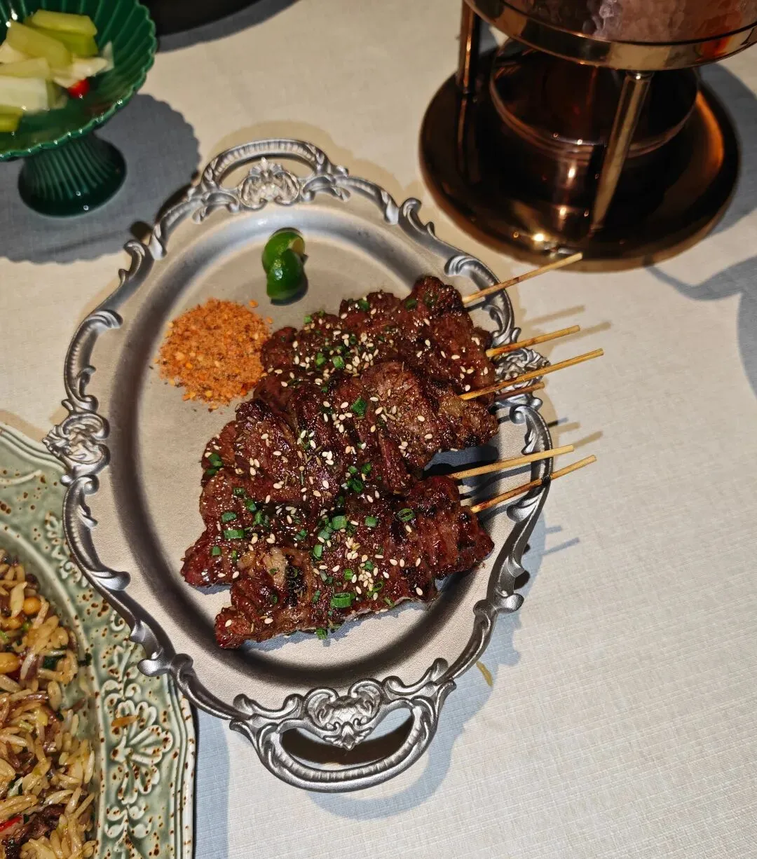 吃一口肉串就会感叹怎么会有如此好吃的牛🐮!确实既有外国牛的嫩又没那么重的奶味,不会那么腻人,兼具本地牛的鲜,嫩的弹牙,缺点就是腌制时候太入味了,个人觉得有点咸,但是还是非常好吃,肉好。