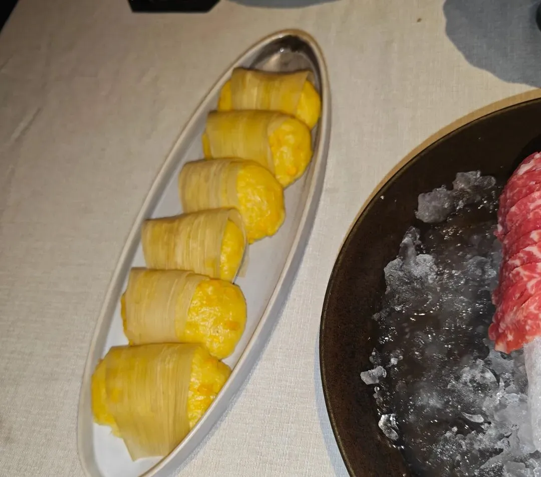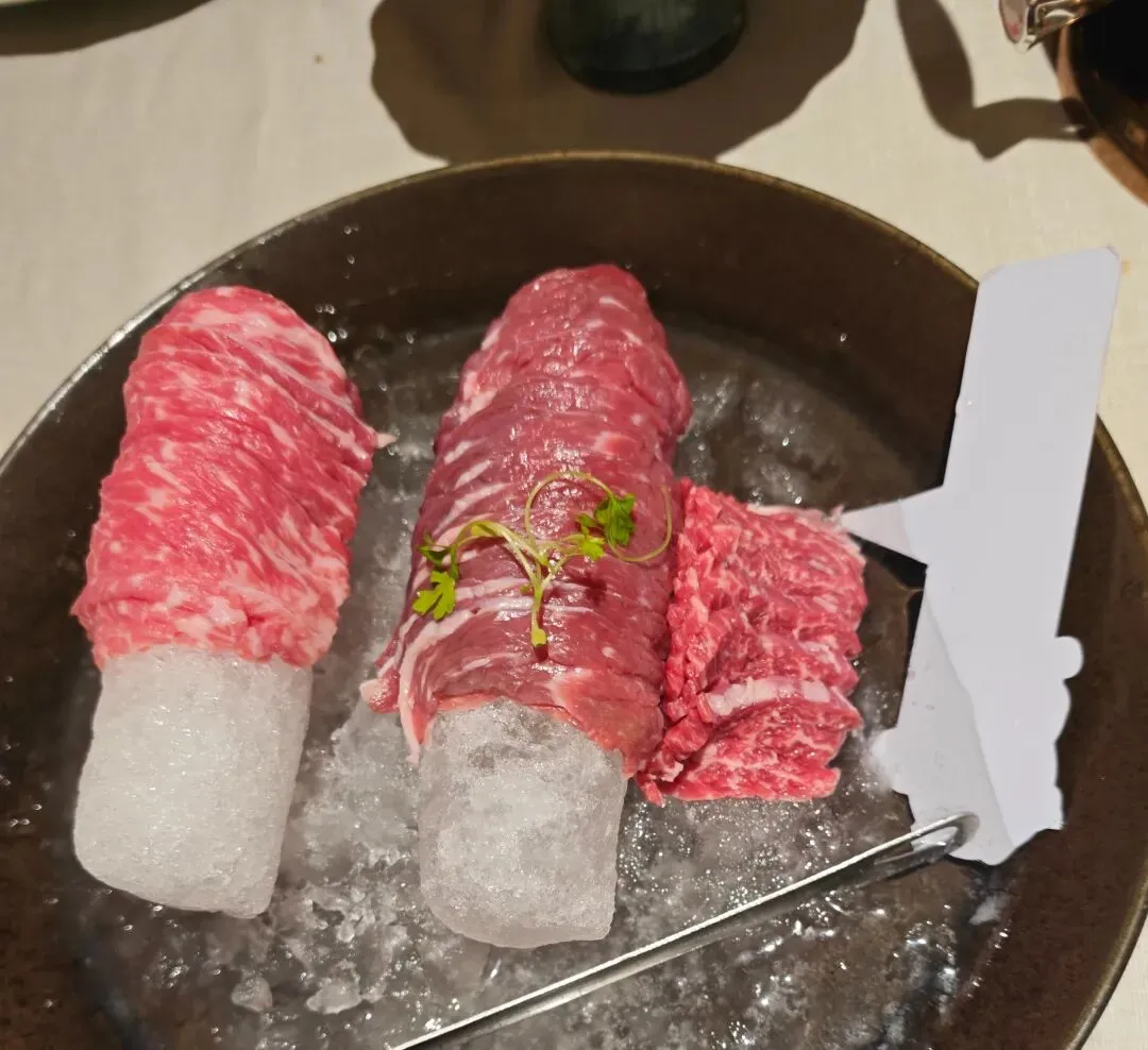 在长城宾馆侧面新开了一家有意思的饭店,店里主打牛肉,自己家牧场直供,是安格斯牛跟本土黄牛的“混血牛”,由贺俊贤大师主理,贺大师擅长创新菜,来试试如何?