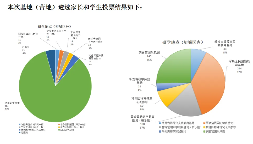 确定韶山研学基地为高三年级研学中标基地(营地)。(后附家长和学生投票结果)