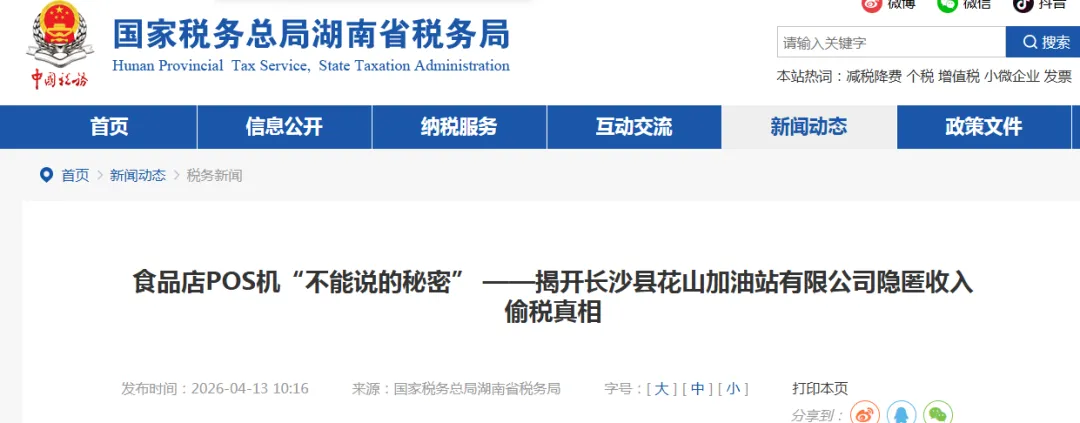 近期,国家税务总局长沙市税务局稽查局依法查处了长沙县花山加油站有限公司偷税案件。经查,2021年至2023年,该加油站通过使用第三方收单机构收取加油款,结算后转至个人银行账户等手段隐匿销售收入进行虚假纳税申报,少缴增值税、企业所得税等税费款184.92万元。2025年1月,国家税务总局长沙市税务局稽查局依法作出追缴税费款、加收滞纳金并处罚款共计358.07万元的处理处罚决定。目前,涉案税费款、滞纳金及罚款均已追缴入库。