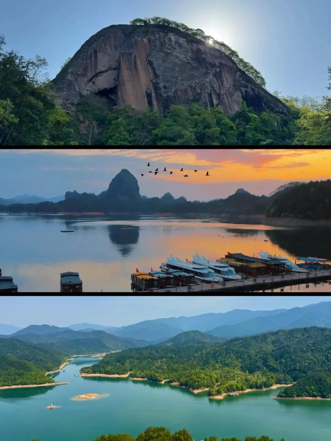 09:30 领队取票后进入,这是一处丹霞秘境,景区红岩赤壁、碧湖相依,乘船+爬山不同形式观赏美景,一路奇山秀水、移步换景,自然野趣十足