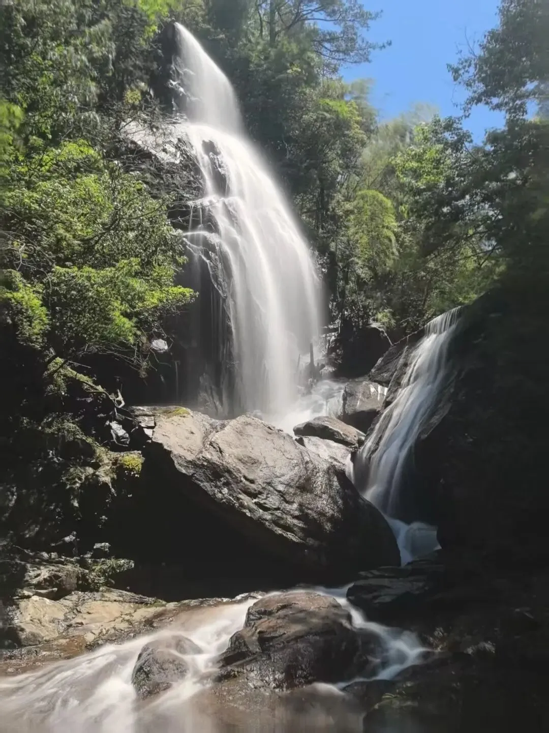 12:30 景区内自行解决午餐,山顶区域游览结束再集合上车前往山腰的栗木桥游览,这里绿树成荫,有非常漂亮的瀑布景观