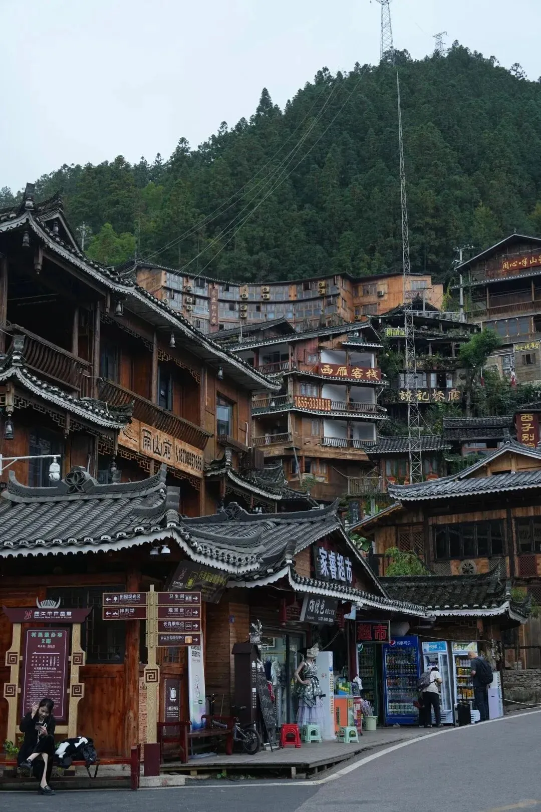 我见过很多古镇古寨,有的太新了,新得像刚刷过一遍油漆的假古董;有的太旧了,旧得只剩下一把锁着的门和一块介绍牌。千户苗寨不一样,它还在活着,还有人住在里面,还有人每天生火做饭、上山下地。它不是被摆在玻璃柜里的文物,它是一个还在呼吸的、热腾腾的寨子。