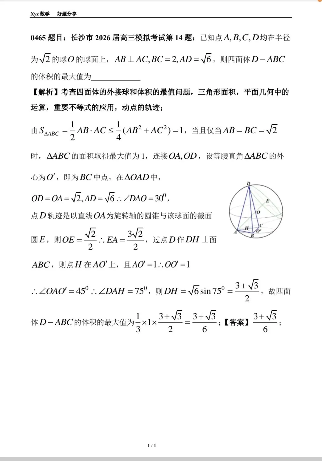 >0465 题目:长沙市 2026 届高三模拟考试第 14 题