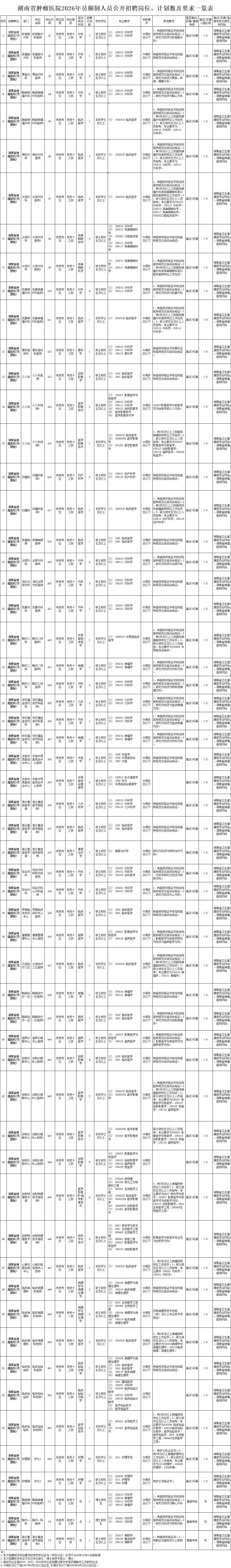 根据《事业单位人事管理条例》《事业单位公开招聘人员暂行规定》《关于进一步做好事业单位公开招聘工作的通知》等事业单位公开招聘有关政策,结合湖南省肿瘤医院工作需要,2026年面向社会公开招聘员额制人员。现将具体招聘方案公告如下: