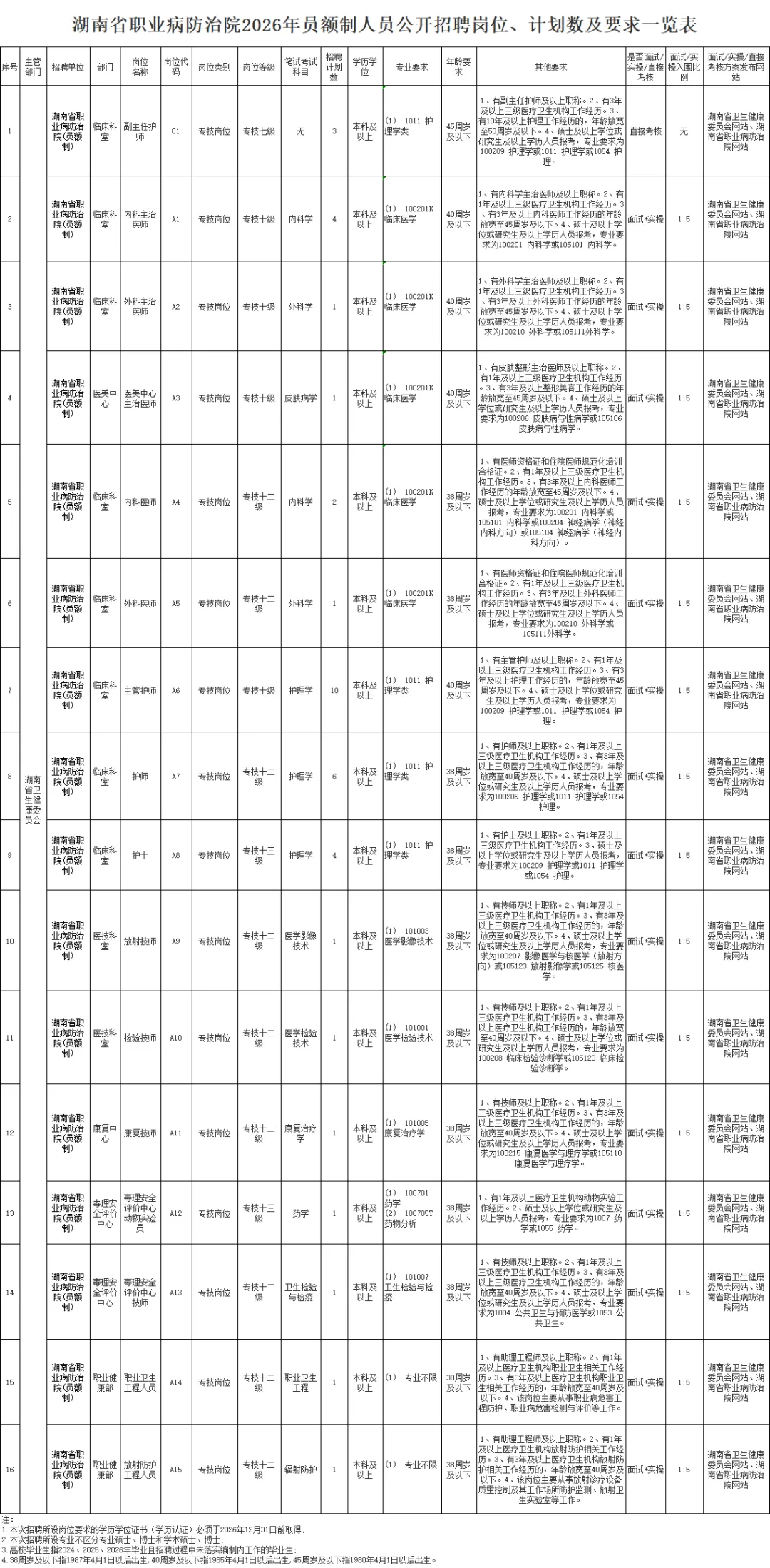 根据《事业单位人事管理条例》《事业单位公开招聘人员暂行规定》《关于进一步做好事业单位公开招聘工作的通知》等有关政策,结合湖南省职业病防治院工作需要,2026年面向社会公开招聘员额制人员。现将具体招聘方案公告如下: