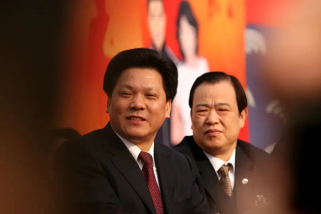 2008年1月5日,贺龙体育场开大会,谢树林(右)陈泽珲(左)一同出席。