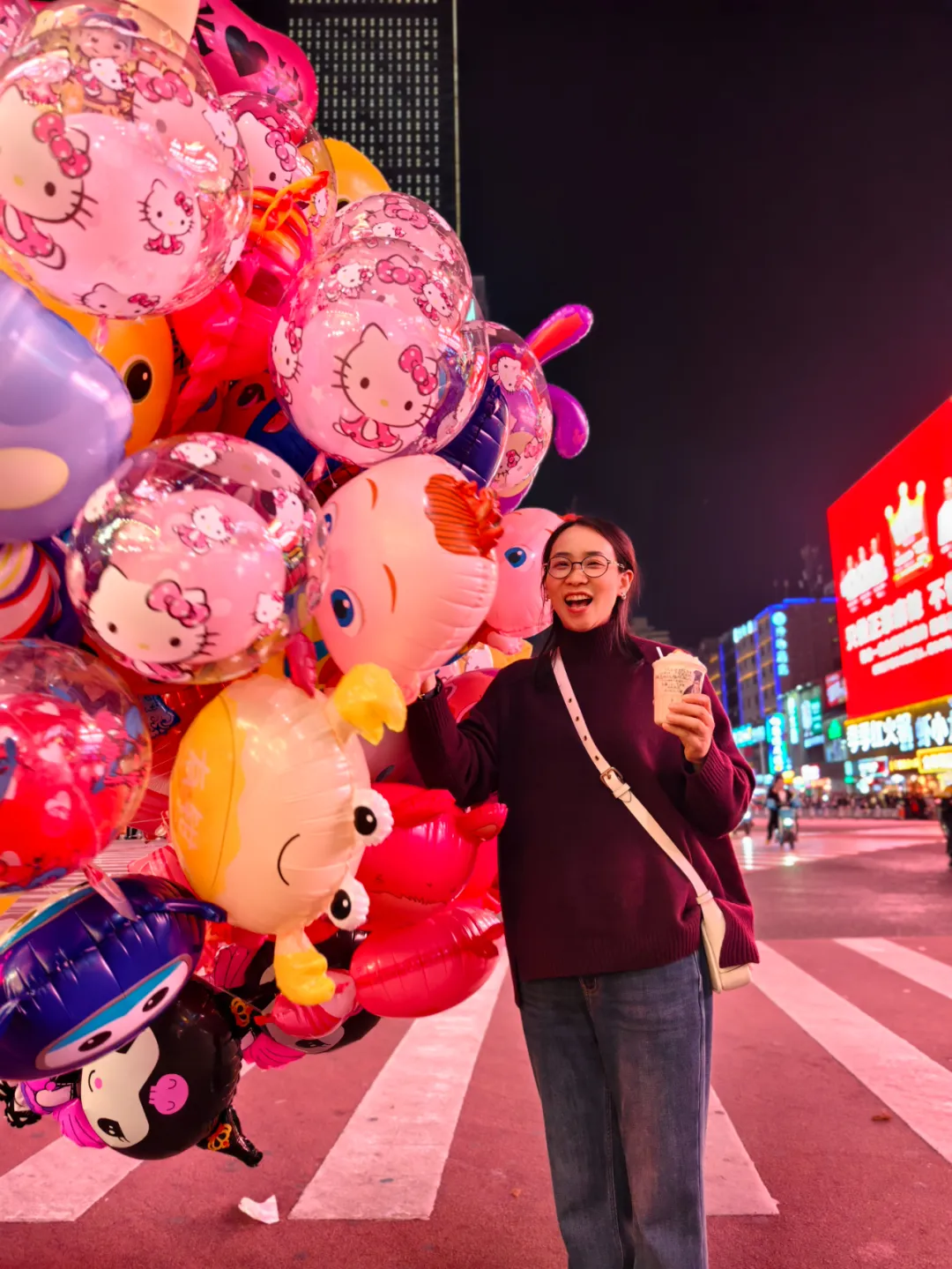 到达五一广场,乌泱泱的一片全是人。随着人流向前走,每走十几步,就能看到茶颜悦色的店面。听来过的朋友说必喝古德墨柠,虽然我们肚子很饱,但还是点了三杯招牌,拿着奶茶,第一口便是细滑的奶盖,入口醇厚的茶香味,和我们无锡的不同,是长沙特有的味道