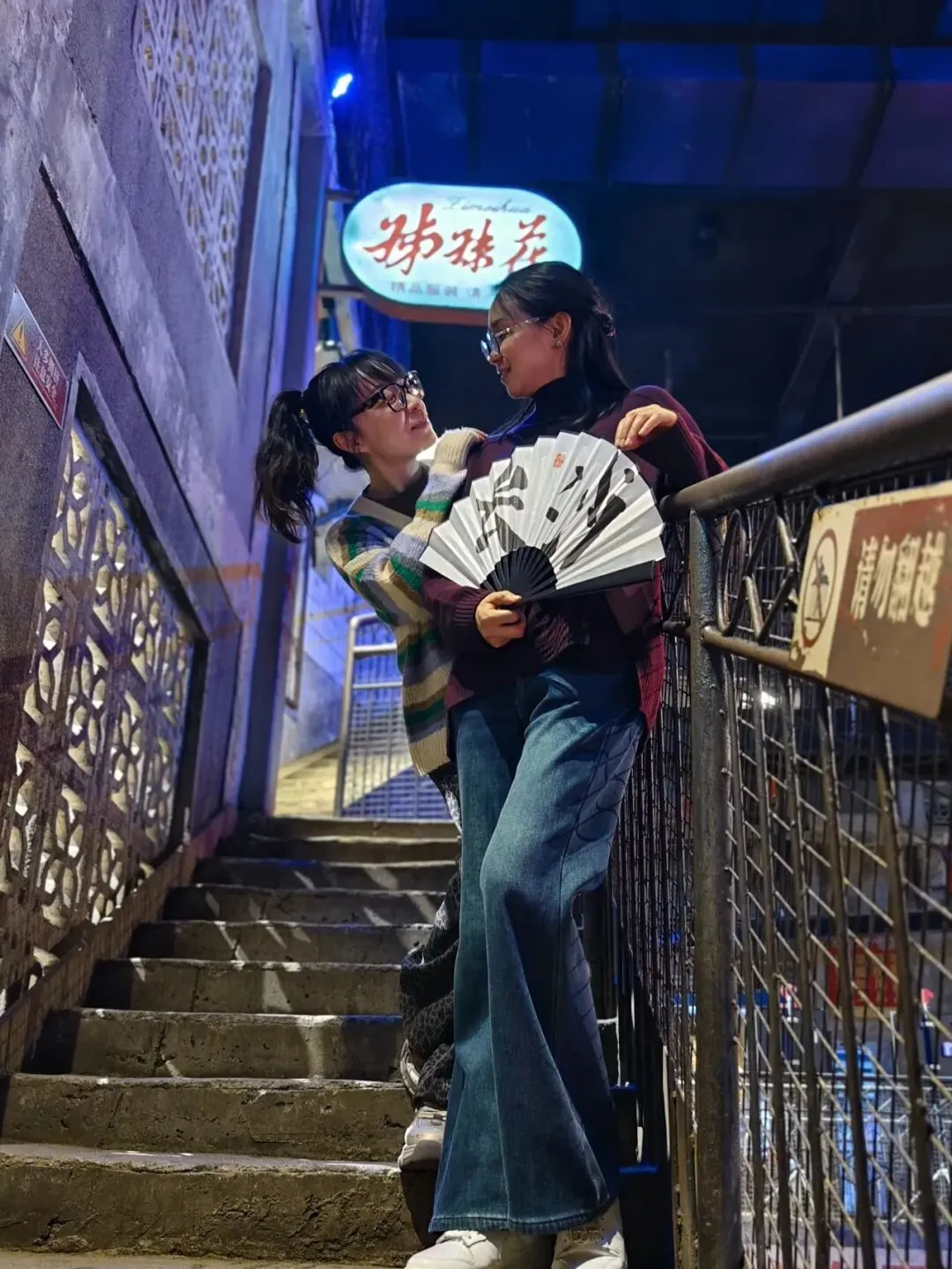 在敏敏的精心取景和专业动作下,我们变成了模特。不知不觉,她把这场深夜之行,变成了一组属于我们自己的“年代大片”。