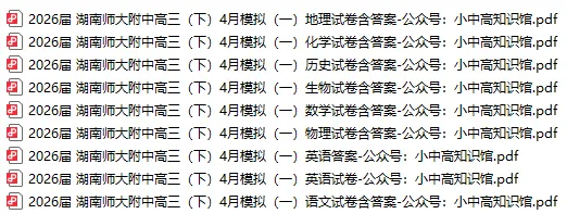 2026届 长沙一中高三(下)月考(七)入学考(26年3月).xlsx 2026届 长沙一中高三(下)月考(八)3月阶段检测(26年3月)全科.xlsx 2026届 长沙一中高三(上)月考(五)(26年1月)全科+听力.xlsx 2026届 长沙一中高三(上)月考(四)(2025年11月)全科含听力.xlsx 2026届 长沙一中高三(上)月考(六)全科+听力(26年2月).xlsx 2026届 长沙一中yan德高三(上)月考(一)(25年9月)全科+听力.xlsx 2026届 长沙一中yan德高三(上)月考(三)(25年11月)全科.xlsx 2026届 长沙一中yan德高三(上)月考(二)(25年10月)全科+听力.xlsx 2026届 长沙市高三模拟考试(26年2月)全科.xlsx 2026届 长沙大学附属中学高三(上)10月月考(25年10月)数物化生地历.xlsx 2026届 长郡中学高三(上)月考(五)(26年1月)全科+听力.xlsx 2026届 长郡中学高三(上)月考(三)(25年11月)全科.xlsx 2026届 长郡中学高三(上)月考(六)全科+听力(26年2月).xlsx 2026届 长郡中学yan德高三(上)月考(一)(25年8月)全科+听力.xlsx 2026届 长郡中学yan德高三(上)月考(二)(25年10月)全科+听力.xlsx 2026届 长郡二十校暨新高考教学教研高三(下)3月联考(26年3月)全科+听力.xlsx 2026届 长郡二十校暨新高考教学教研高三(下)(三模)第二次联考(26年4月)全科+听力.xlsx 2026届 长郡二十校暨新高考教学教研高三(上)12月联考(25年12月)全科+听力.xlsx 2026届 雅礼中学高三(下)月考(七)开学考(26年3月)全科.xlsx 2026届 雅礼中学高三(下)月考(八)(26.4)全科.xlsx 2026届 雅礼中学高三(上)月考(五)(26年1月)全科.xlsx 2026届 雅礼中学高三(上)月考(四)(25年12月)全科+听力.xlsx 2026届 雅礼中学高三(上)月考(三)(25年11月)全科.xlsx 2026届 雅礼中学高三(上)月考(六)全科(26年2月)全科.xlsx 2026届 雅礼中学yan德高三(上)月考(一)(25年8月)全科+听力.xlsx 2026届 雅礼中学yan德高三(上)月考(二)(25年9月)全科+听力.xlsx 2026届 湘一名校联盟 高三上学期12月质量检测(25年12月)全科.xlsx 2026届 湘东教学联盟高三(上)11月联考(25年11月)全科.xlsx 2026届 天YI名校联盟湖南省高三(上)起点考试(25年7月)全科.xlsx 2026届 天YI名校联盟湖南高三(上)8月入学考(2025年8月)全科.xlsx 2026届 天YI名校联盟湖南高三(上)11月质量检测(25年11月)全科.xlsx 2026届 天YI大联考湖南高三(上)阶段性检测二(25年9月)全科.xlsx 2026届 天YI大联考湖南高三(上)阶段性检测(一)(25年8月)全科.xlsx 2026届 师大附中高三(下)模拟一(26年4月).xlsx 2026届 师大附中高三(上)月考(五)(26年1月)全科+听力.xlsx 2026届 师大附中高三(上)月考(四)(25年11月-12月)全科+听力.xlsx 2026届 师大附中高三(上)月考(三)(25年11月)全科.xlsx 2026届 师大附中高三(上)月考(七)(26年2月底)全科+听力.xlsx 2026届 师大附中高三(上)月考(六)全科+听力(26年2月).xlsx 2026届 师大附中yan德高三(上)月考(一)(25年9月)全科.xlsx 2026届 师大附中yan德高三(上)月考(二)(25年10月)数物英.xlsx 2026届 麓山国际学校高三(上)开学考(25年8月)全科.xlsx 2026届 金太阳湖南高三(上)10月阶段监测联合考试(25年10月)(全科).xlsx 2026届 湖南省九校联盟高三第二次联考(26年3月)全科+听力.xlsx 2026届 八省八校T8(湖南师大附中)联考高三(下)4月联考(26年4月)语数英物历日.xlsx 2026届 八省T8联考高三(上)12月检测训练(25年12月)全科.xlsx 2026届 yan名校联考联合体湖南高三(上)第一次联考(25年8月)全科+听力.xlsx 2026届 yan名校联考联合体湖南高三(上)1月联考(26年1月)全科含听力.xlsx 2026届 yan名校联考联合体湖南高三(上)10月月考(25年10月)(全科).xlsx 2026届 25-26暑假训练.xlsx |