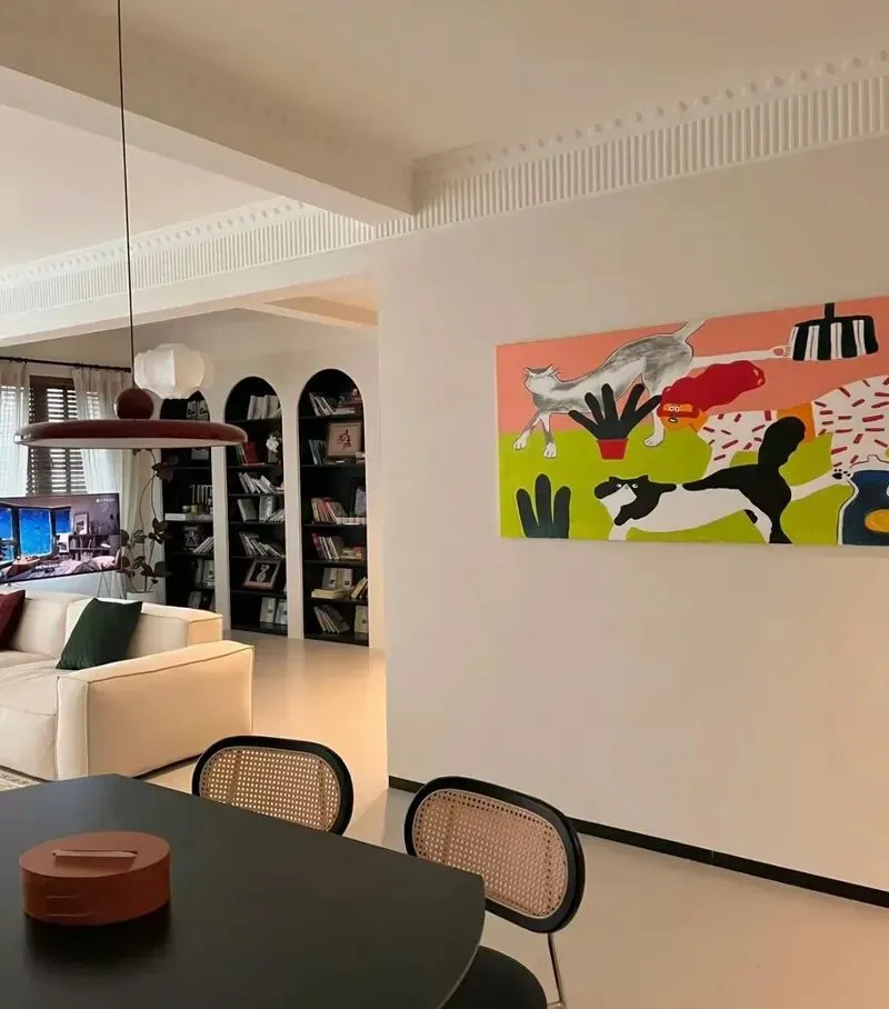小朋友自己画满墙的贴纸,沙发旁边堆的小书架,零零碎碎,全是生活的痕迹,也许这就是属于我们自己的温度,不用别人的标准来要求自己,反正家就这样慢慢变好。