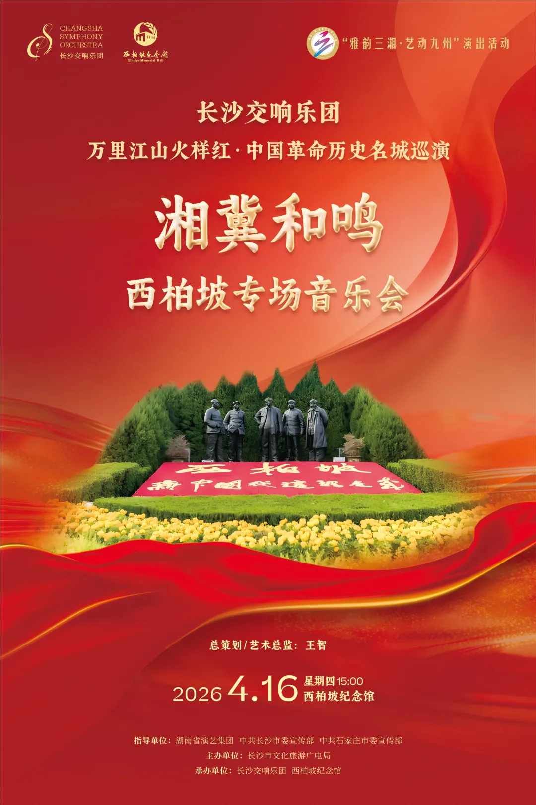 弦歌寄情忆峥嵘,薪火相传赴新程。4月15日至17日,承载着湖湘儿女红色情怀的长沙交响乐团,将首次踏足燕赵大地,奔赴革命圣地西柏坡,开展“万里江山火样红·中国革命历史名城巡演”活动,以高雅交响之音,串联湘冀红色血脉,奏响革命精神的时代赞歌。