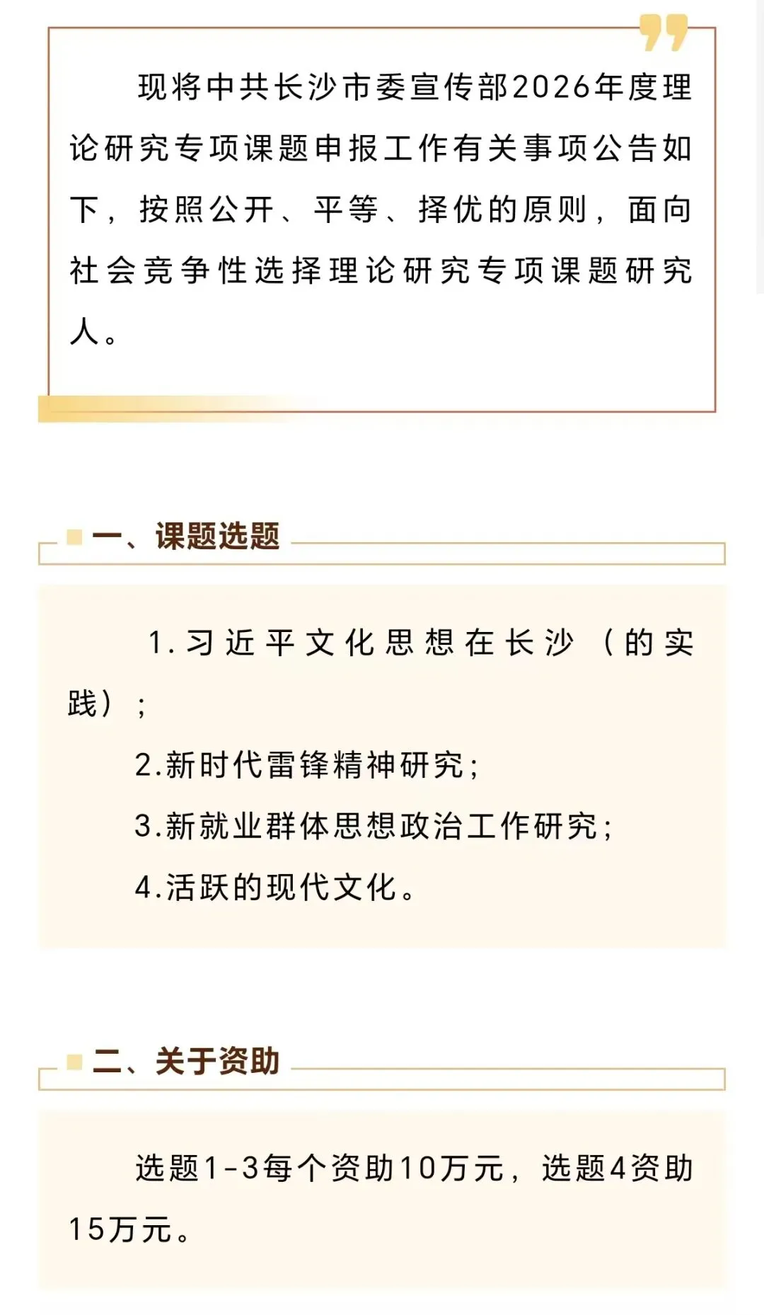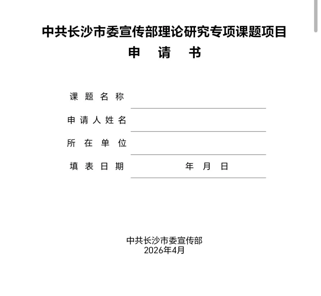 >【课题申报】中共长沙市委宣传部2026年度理论研究专项课题申报