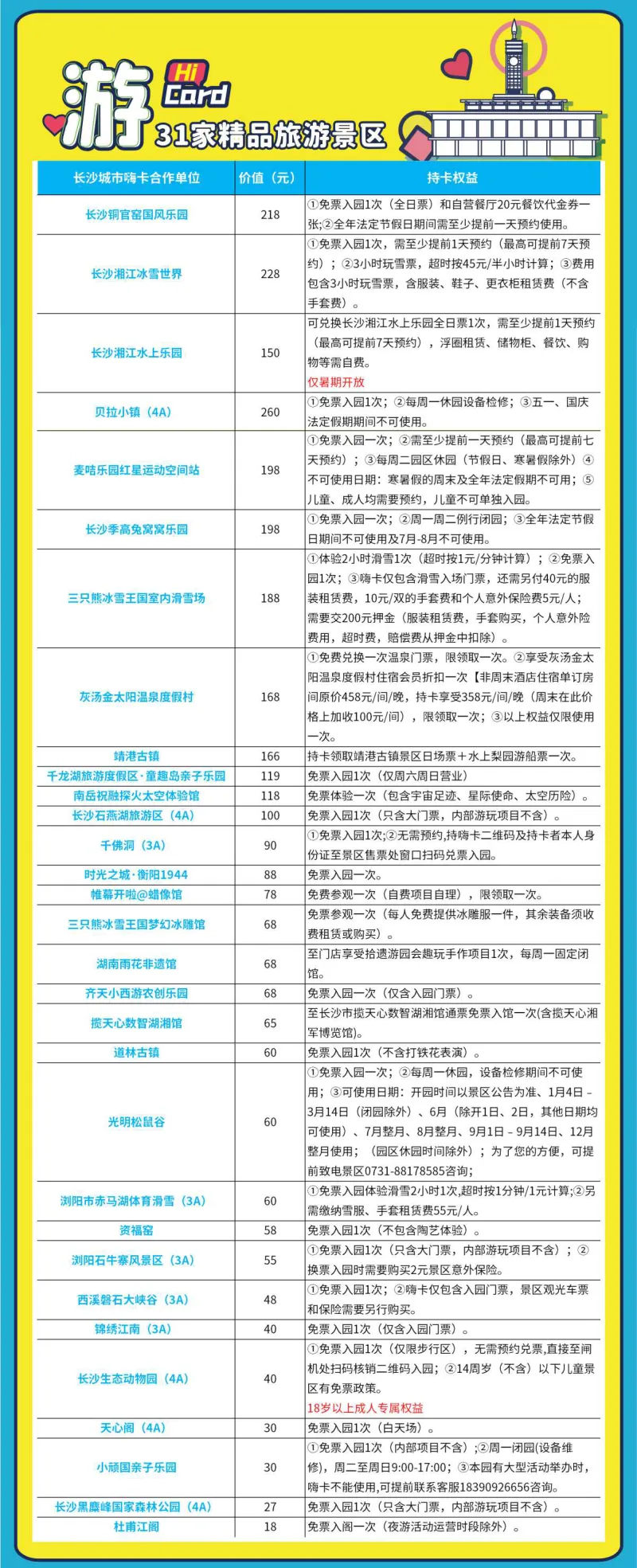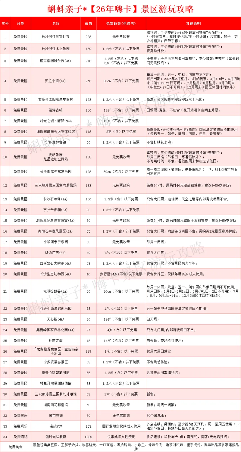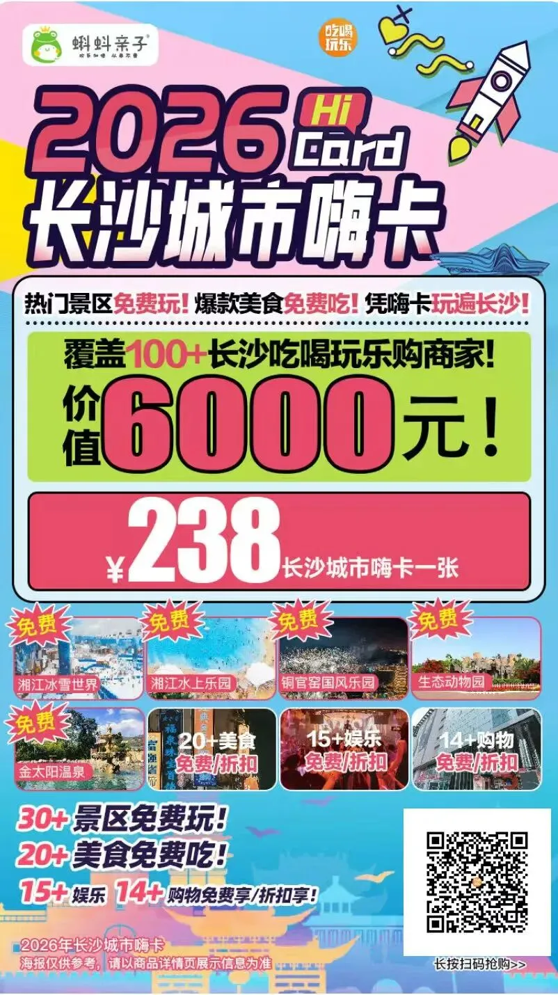 爆款!【26年长沙城市嗨卡】即将停售!30+景区免费玩! 20+美食免费/折扣吃! 还有休闲娱乐免费享!单张总价值超6000元!
