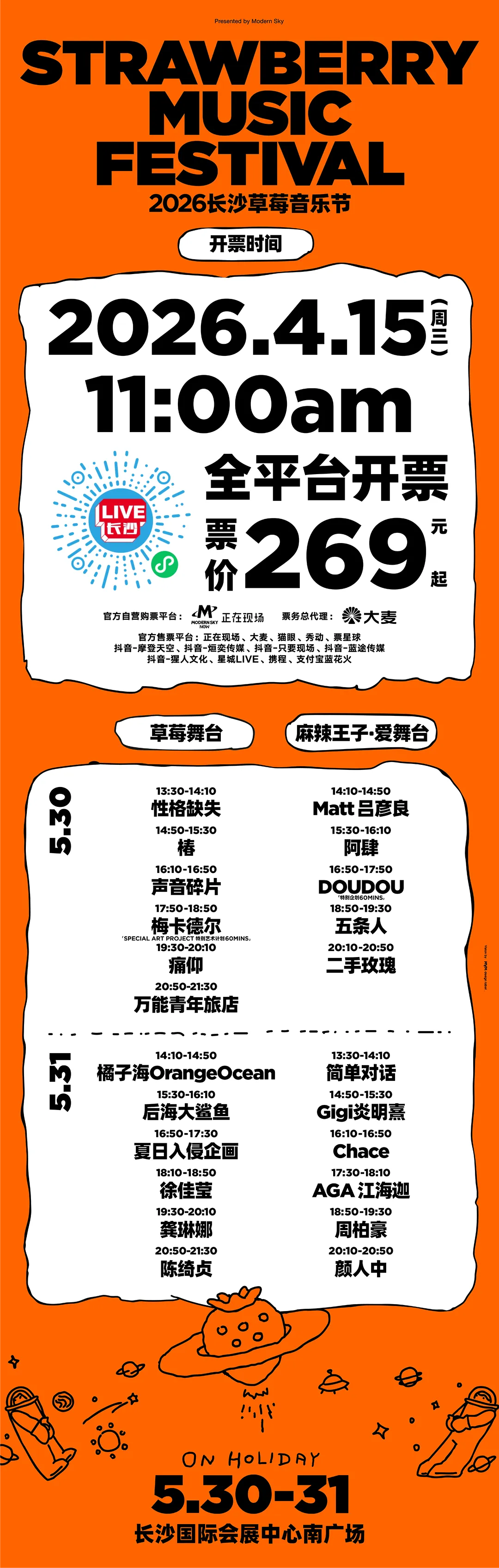 今日11点开票!2026长沙草莓音乐节演出时间表公布