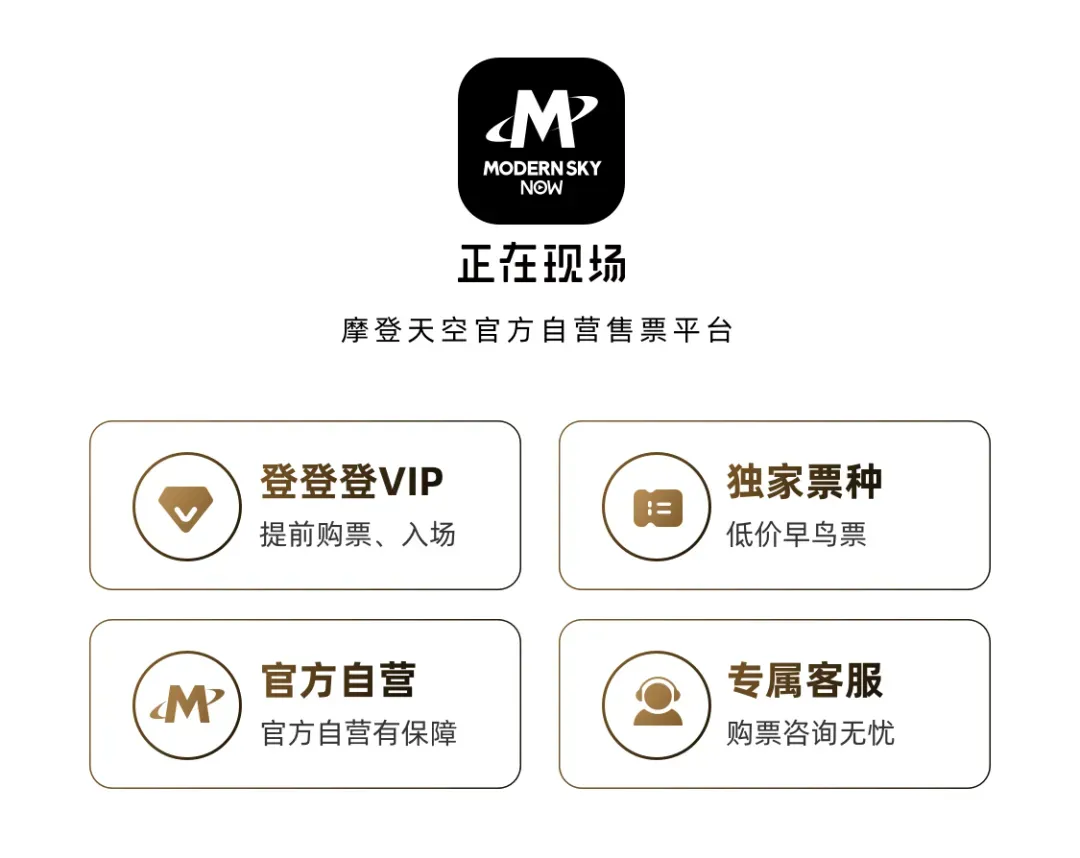 为了保障您的权益实现并获得良好的观演体验,请您向下滑动,继续完整阅读理解本页面所有内容后再进行门票购买或使用。1.订单支付成功后,不支持修改观演日期、观演人、票种等信息。2.个人实名制门票,仅限订单内登记的观演人本人使用,转赠或转售他人使用将无法入场。3.演出现场均为站立观演,不设座位,门票仅限一次进出,中途离场后将无法再次入场。4.如无法如期观看演出,请提前查阅公示的退票规则并按照退票规则申请退票,退票时间截止后无法受理退票请求。5.任何购买或使用门票行为,视为已阅读理解本文须知内容,购买或使用前请再三阅读理解本页面介绍。1. 官方售票平台:正在现场、大麦、猫眼、秀动、票星球、抖音-摩登天空、抖音-烜奕传媒、抖音-只要现场、抖音-蓝途传媒、抖音-猩人文化、星城LIVE、携程、支付宝蓝花火。请选择从官方售票平台购票,切勿盲目相信二手交易、代刷代抢等一切非官方途径获取门票,一切从非官方售票途径获取门票产生的后果均由个人承担。2. 本场演出门票为实名制身份证电子票,一票一证,无纸质门票。可提前通过官方售票平台录入观演人信息,以便快捷购票。购票时请再三确认好购买日期、票种、观演人等重要信息,避免信息错误无法入场。3. 支付成功后,不支持更换观演日期、观演人,个人门票仅限订单内登记的观演人本人使用。如因购票时填写的观演信息有误、转增或转售门票导致无法入场,需自行承担责任。4. 一个日期对应一个证件仅限持有1张门票,请不要使用同一个证件在多个平台重复购买同一日期门票。若产生无效的重复订单,票务平台有权对此订单整体取消,仅保留一笔订单。且重复订单需整单整退,无法拆单退票,并收取整单付款金额的30%作为退票手续费,因此重复购票产生的费用,或无法入场观演等一切损失由购票人及观演人自行承担。5. 未成年人购票前请获得法定监护人同意,若购票订单成功生成并完成支付,视为已经过法定监护人准许购票。由此产生的法律责任由其法定监护人承担,与票务平台、主办方无关。如需退票请按照统一退票规则执行。-本次音乐节于04月15日11:00正式开启门票预售,预售开售后,订单支付完成后视为购票成功:2026年4月16日11:00之前,可无条件办理退票。2026年4月16日11:00-5月22日11:00,此期间申请退票收取订单实际付款金额30%的手续费。2026年5月22日11:00之后,不支持退票,不再接收退票请求。-退票仅支持整单整退,同一订单下的多张门票不支持拆分退票。-退票门票将返回官方售票平台继续销售,继续销售的门票同等适用本场音乐节退票、购票、入场等规则。同一入场人、同一个购票账户,请不要跨平台重复购票或退票,以免造成订单异常无法入场。-如需退票,请联系原购票平台,在客服工作人员正常工作时间内进行申请,申请方式、退款到账时间以各平台规则为准。-为了保障您的入场体验,请务必携带身份证原件入场。无身份证的未成年人需携带户口本核验入场。登记其他有效证件类型购票成功的观众,请本人携带有效证件原件核验入场。-如因购票时填写的观演信息有误、通过非官方售票途径获取门票导致无法入场,需自行承担责任。-观众最晚入场时间为:20:30,受现场各类突发情况等不可控因素影响,演出时间时长和入场时间请以现场实际发生为准,请提前规划好出行时间。本场演出均为站席观演,不设座位。重要提示:身份证电子票仅限本人使用,单天仅限一次使用,出场后无法再次入场。免票政策:1.2米以下儿童可在已购票家长(监护人)陪同下免票入场,每位家长(监护人)限携带一位儿童。特别提醒:音乐节现场人员相对较多,家长需自行看管好儿童。音乐节现场音响声音较大,6岁以下婴幼儿不建议入场,避免造成听力损伤。为保障大型群众性活动安全,请您务必清楚以下禁限带物品,请勿携带入场:*禁止携带冷焰火、烟雾棒(罐)、烟饼等各类可燃&冒烟物品、旗杆和各类旗帜/横幅/条幅/标语/传单(包括任何伸缩旗帜旗杆)、酒精或含酒精成分饮品、打火机。*禁止携带非密封包装食品(如零食、快餐、水果等非密封包装或已拆封食品)。*禁止携带大型或硬质坐卧休息物品(如塑料/金属凳子、充气沙发、大型充气床垫、其他折叠桌/椅)。*禁止携带长柄雨伞(可自备其他轻便雨具,如小型折叠伞、雨衣等)。*禁止携带硬质发光灯牌、可投掷发光发声应援物、充气物(气球/气棒)、航拍飞行器、专业摄录设备(单反或长焦镜头长度超10厘米)、自拍杆(含三脚架)。*禁止携带各类型号材质饮品容器(金属、玻璃、瓶装、罐装、袋装等),自带饮品入场流程繁琐,体验欠佳,安检容易拥堵。若自带饮品请在安检前【饮品-免费换杯点】将饮品倒入官方定制的免费水杯后并在安检前试喝无问题方可带入,饮品容器请自弃或寄存。1.禁止携带宠物(导盲犬除外)、大件行李(超过50*36*20cm)、马克笔、油漆笔、激光笔、水枪、玩具枪、仿真枪、自行车、平衡车、滑板、轮滑、帐篷天幕、露营车。2.禁止携带穿戴有敏感性政治性侮辱性的服装/饰品/帽子/鞋子等物品。严禁将烟花、爆竹、火柴、管制刀具、枪支弹药、散装药品、违禁药品、液压罐装防晒以及其他罐装喷雾类产品、易投掷物品、以及含酒精化妆品在内的常规易燃易爆危险物品。3.其他国家法定禁止携带物品、大型活动禁止