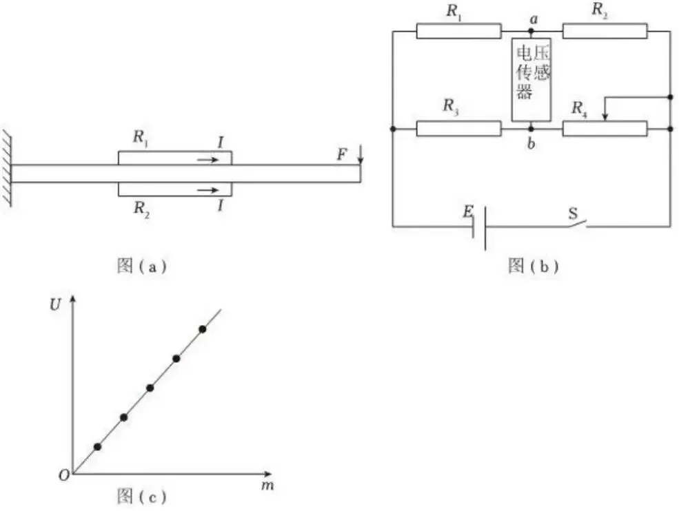 弯曲,使两电阻应变片被拉伸或压缩形变,电阻发生改变。已知在日常体重测量范围