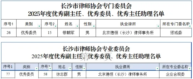 再获殊荣!我所银朝军、徐志群荣获长沙市律师协会2025年度优秀委员