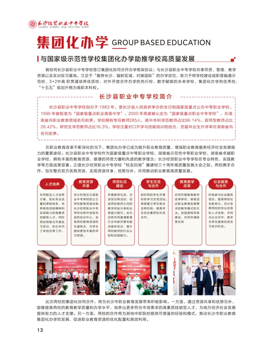 学校率先与县内优质公办职业中专实行集团化办学,与国家级示范性职业中专共享师资、管理、教学资源以及实训实习基地。