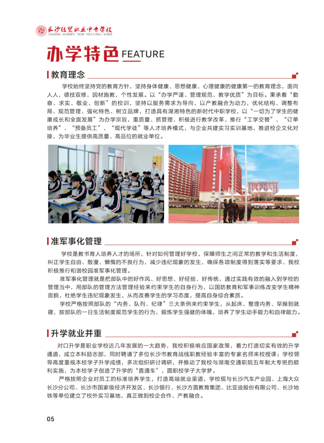 学校立足“服务长沙、辐射区域、对接国际”的办学定位,致力于将学校建设成职普融通示范校、3+2中高职贯通培养优质校、对外开放合作办学的先行校、数字赋能的未来学校、集团化办学的优秀校,“十五五”规划升格为高职本科院校。