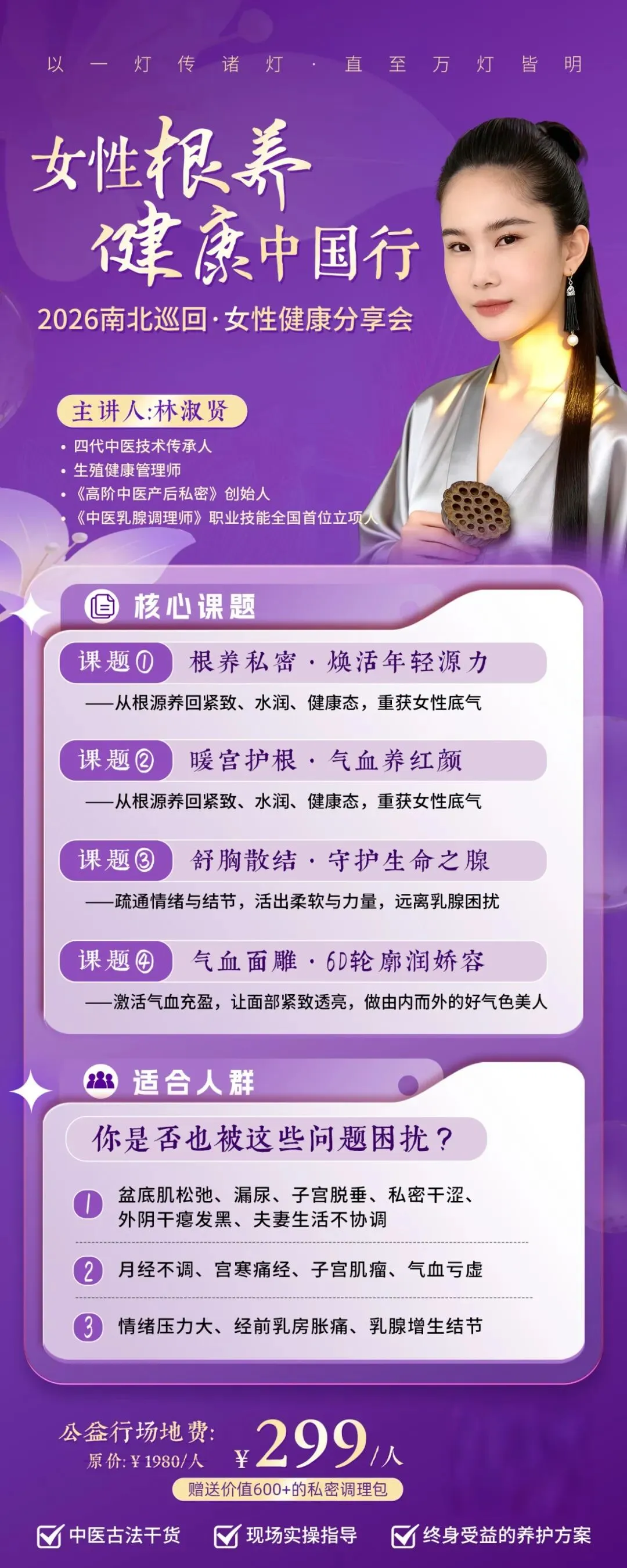 淑贤老师带着专业科普走进你的城市、来到你家门口,把深耕多年的根养干货,带到每个姐妹身边。