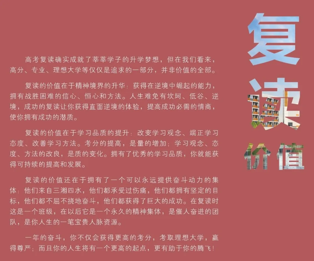 有强烈复读意愿或名校情结,心态阳光,意志力坚强,且想通过自己的努力重新规划人生。