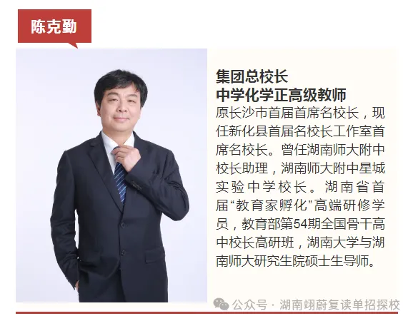 该校汇聚了一支在湖南省内享有盛誉的卓越管理队伍,团队成员兼具前瞻性教育理念与务实高效的工作作风。这支核心团队通过科学规划发展蓝图、精准把握办学航向,系统推进现代学校治理体系建设。以卓越的办学定位推动学校高质量发展,其创新管理模式和战略性决策体系,正为创建全国一流民办高中的战略愿景持续注入创新动能。