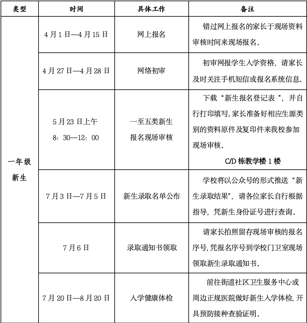 初审网报学生入学资格,请一年级新生家长及时关注手机短信或报名系统信息。