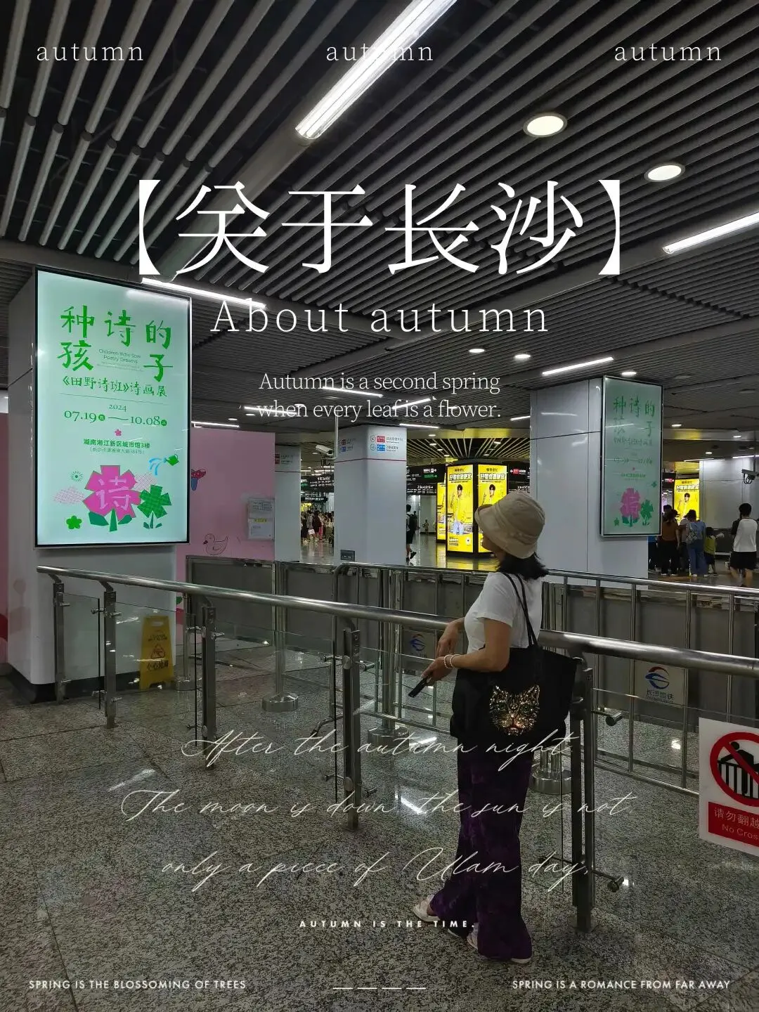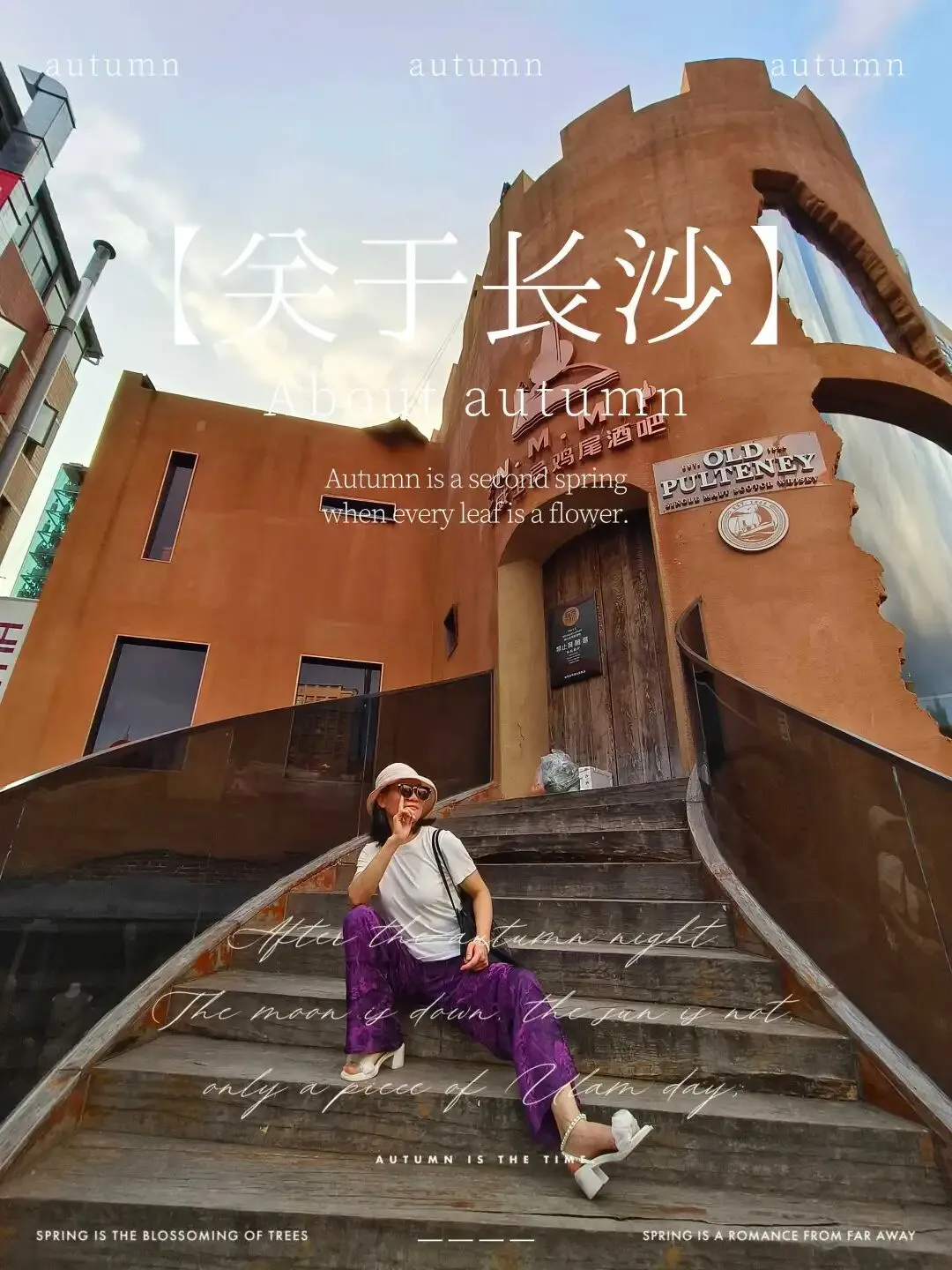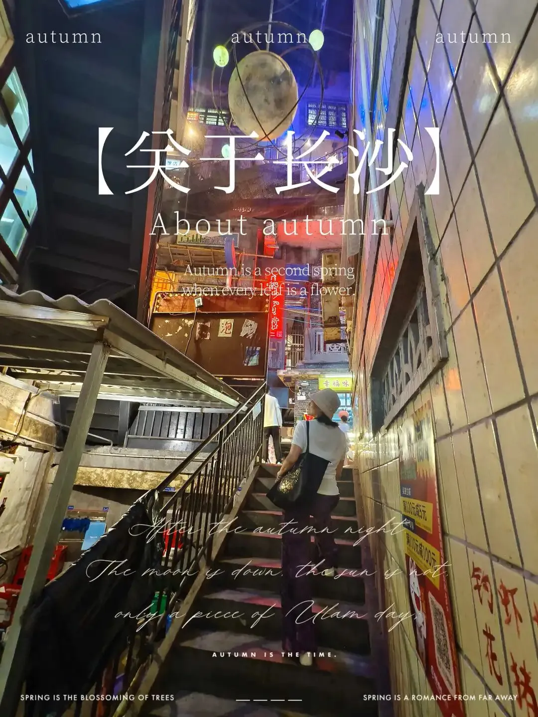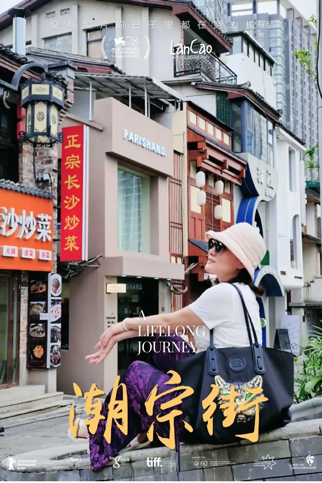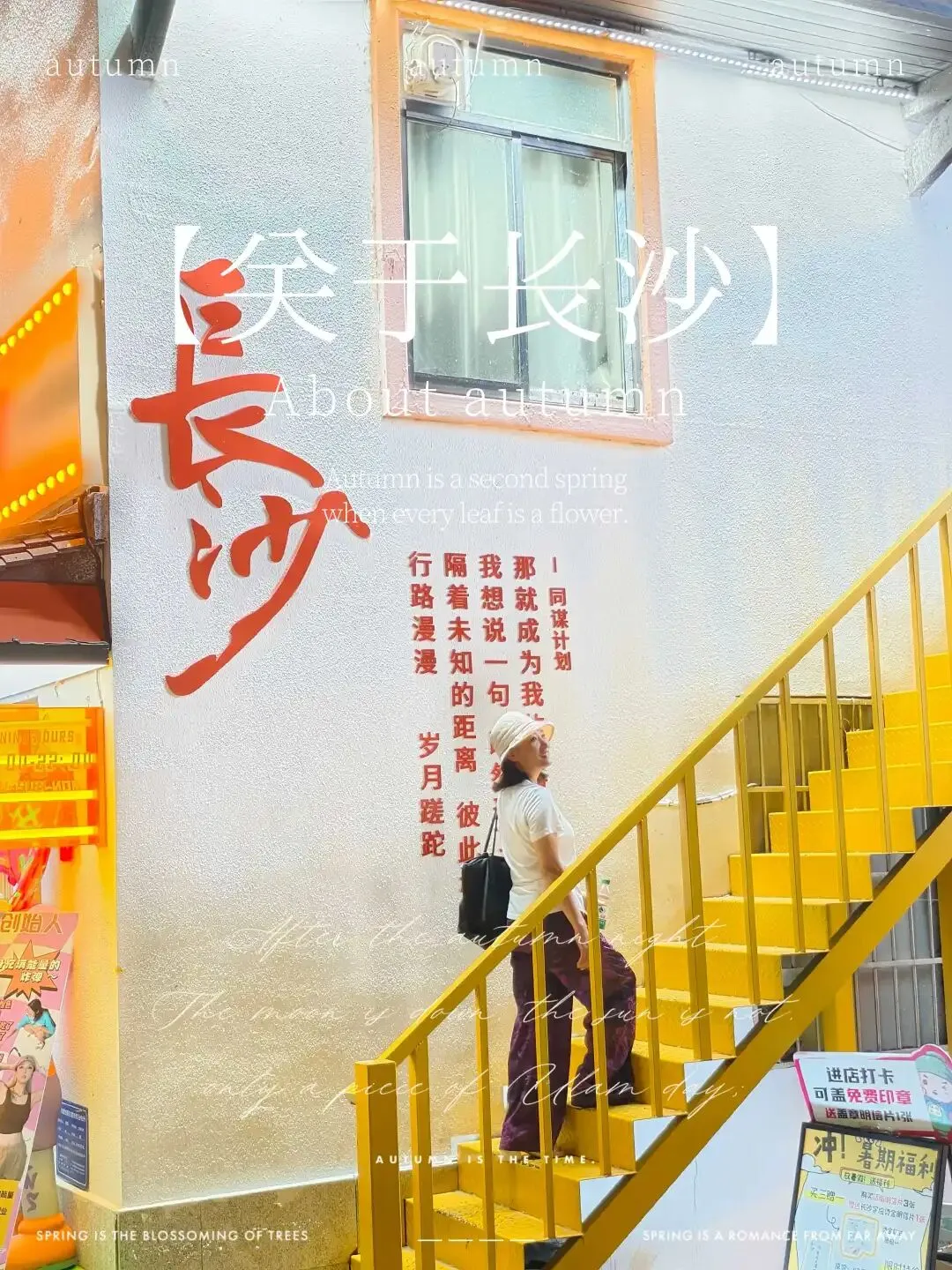 遇到“长沙”字标,安排人物沿楼梯走上,拍一张。