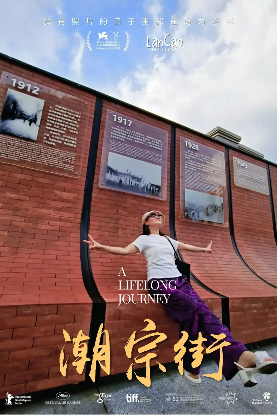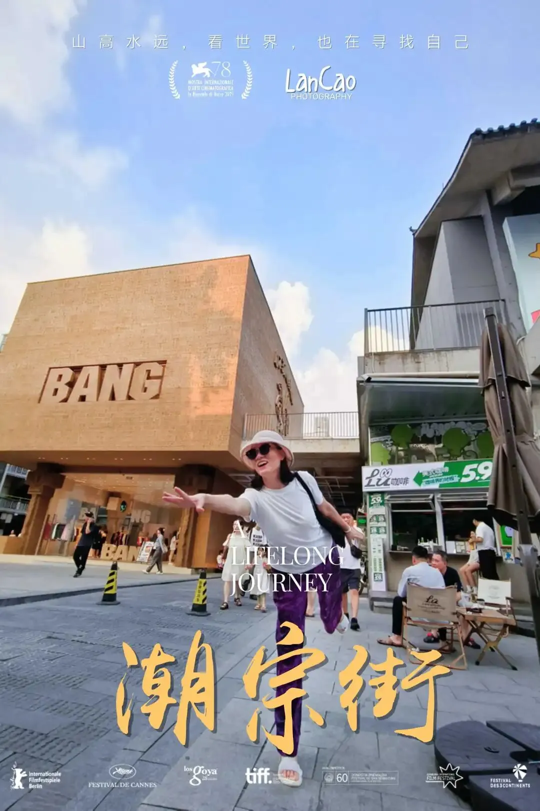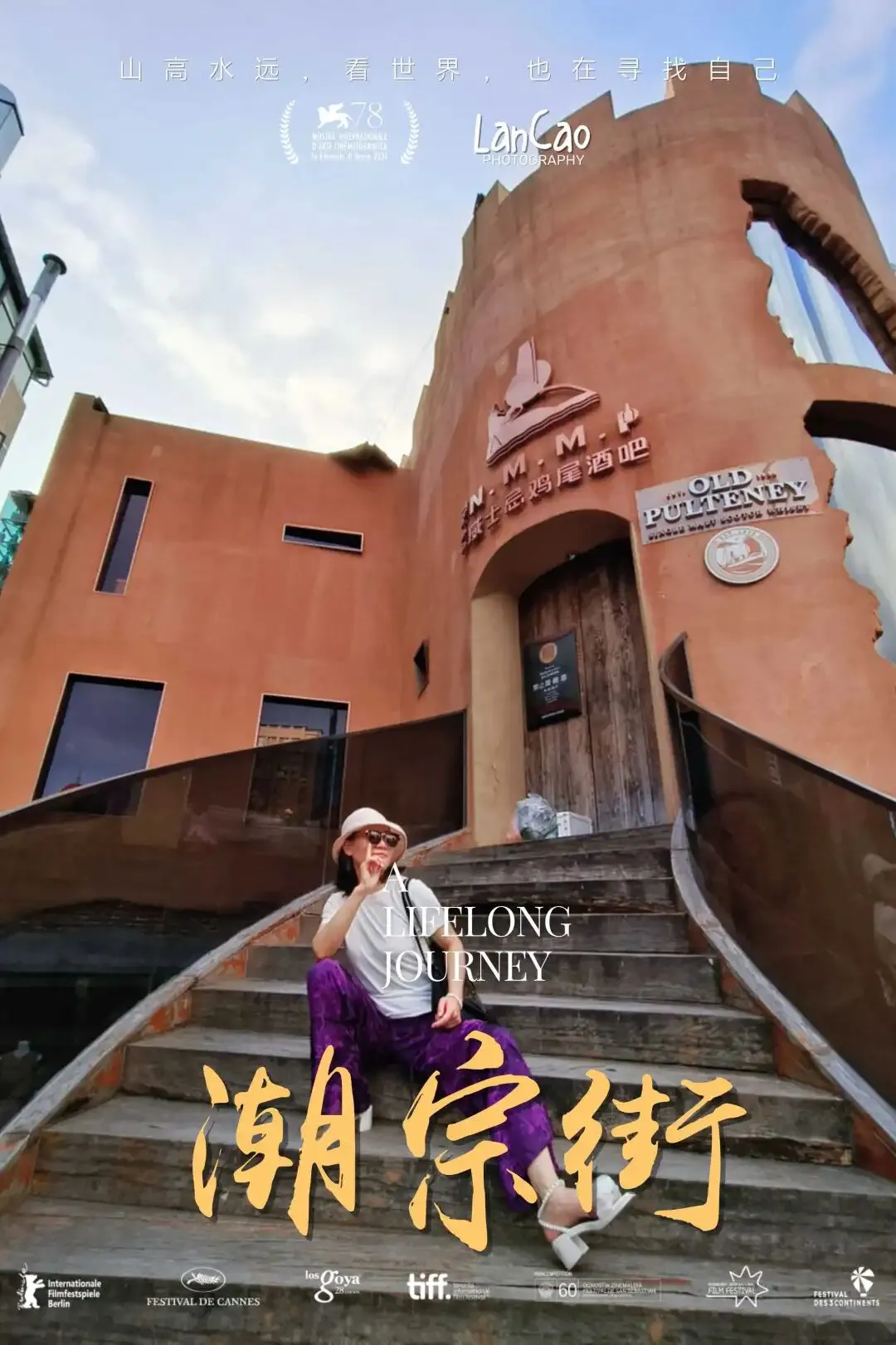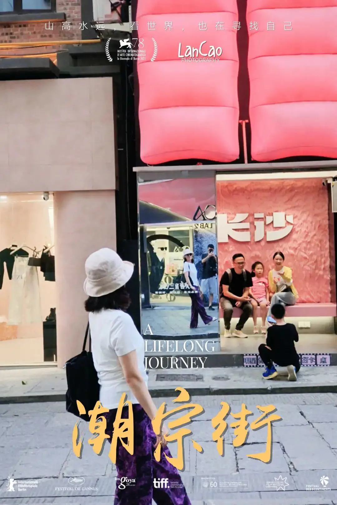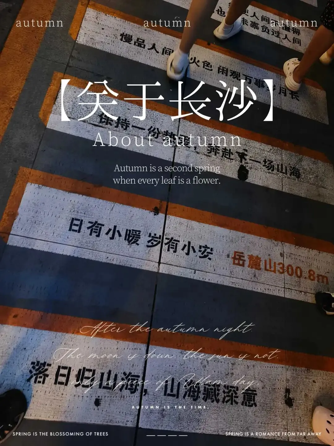 遇到“长沙”字标,安排人物沿楼梯走上,拍一张。