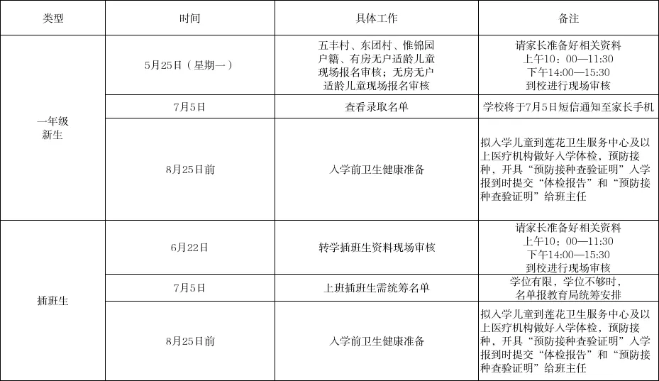 家长在5月25日(星期一)上午10:00-11:30、下午14:00-15:30带齐相关资料到学校进行现场报名。