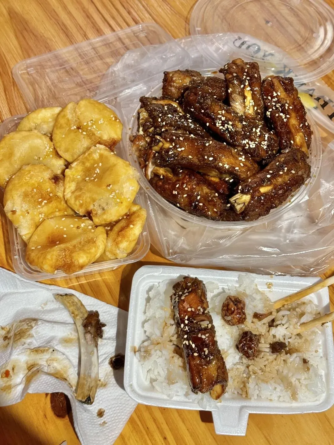 你看这堆酱排骨,油亮亮裹满白芝麻,酱香都快透出来了,一咬肉直接脱骨,软嫩入味,剩下的酱汁拌米饭我都能多炫两碗,真的巨解馋。中间那碗焖得糯叽叽的骨头更是绝,吸满了料汁,咬开全是油香,太上头了。