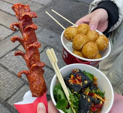 我在那吃了一圈下来,臭豆腐5块钱一份,比五一广场便宜10块,关键是真的好吃,外面炸得脆,里面还是嫩的,酱料也不一样,是那种发酵很久的老卤,你一吃就知道不是批量生产的那种。烤串也是,牛肉串3块钱一串,我当时就觉得这价格有问题,结果一咬,肉是真肉,不是那种合成的,老板还在那边现切现穿,就很实在。