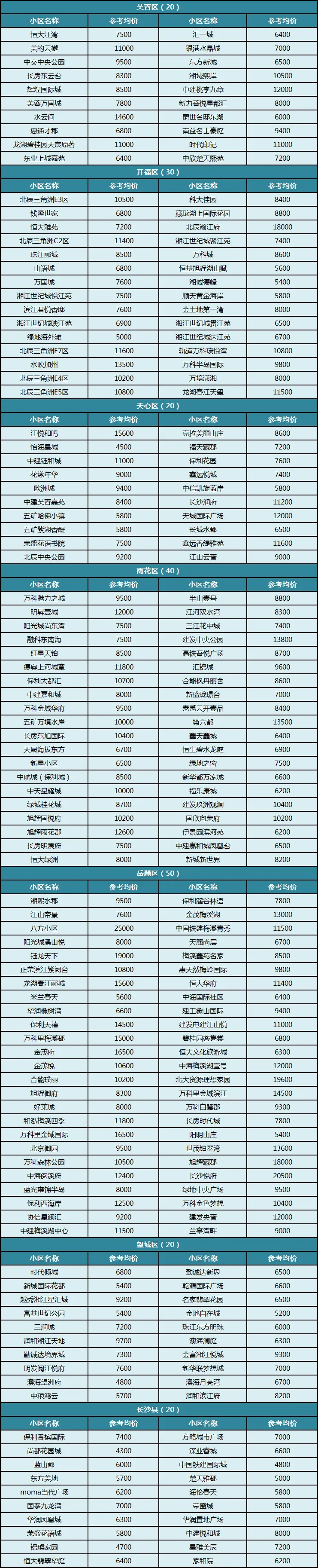 注:表格均价数据仅为市场参考,不作为交易依据,购房请以实地看房及最新报价为准。