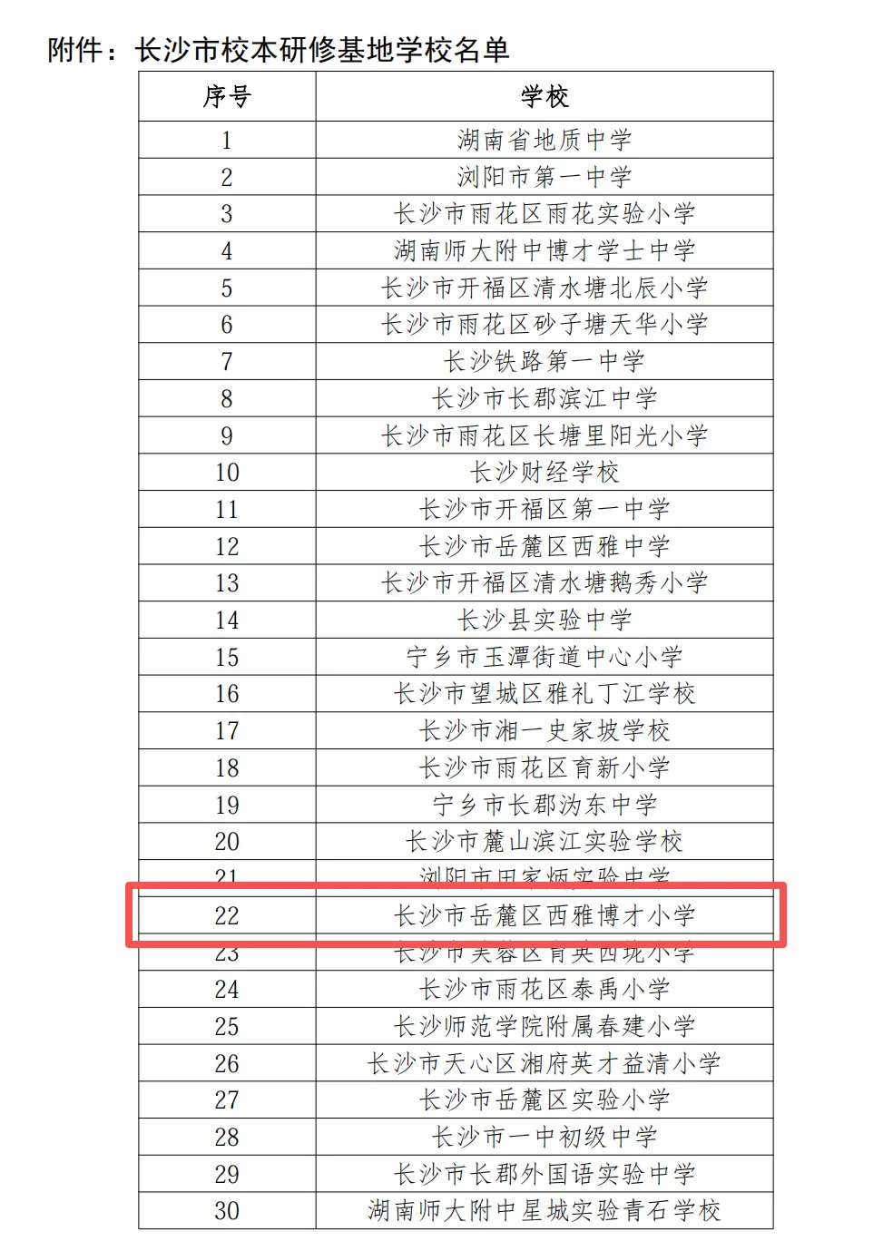 近日,长沙市中小学教师发展中心公布《长沙市校本研修基地学校认定情况的通报》,经学校申报、区县推荐、市级严格认定,我校正式入选2026—2028年长沙市校本研修基地学校!