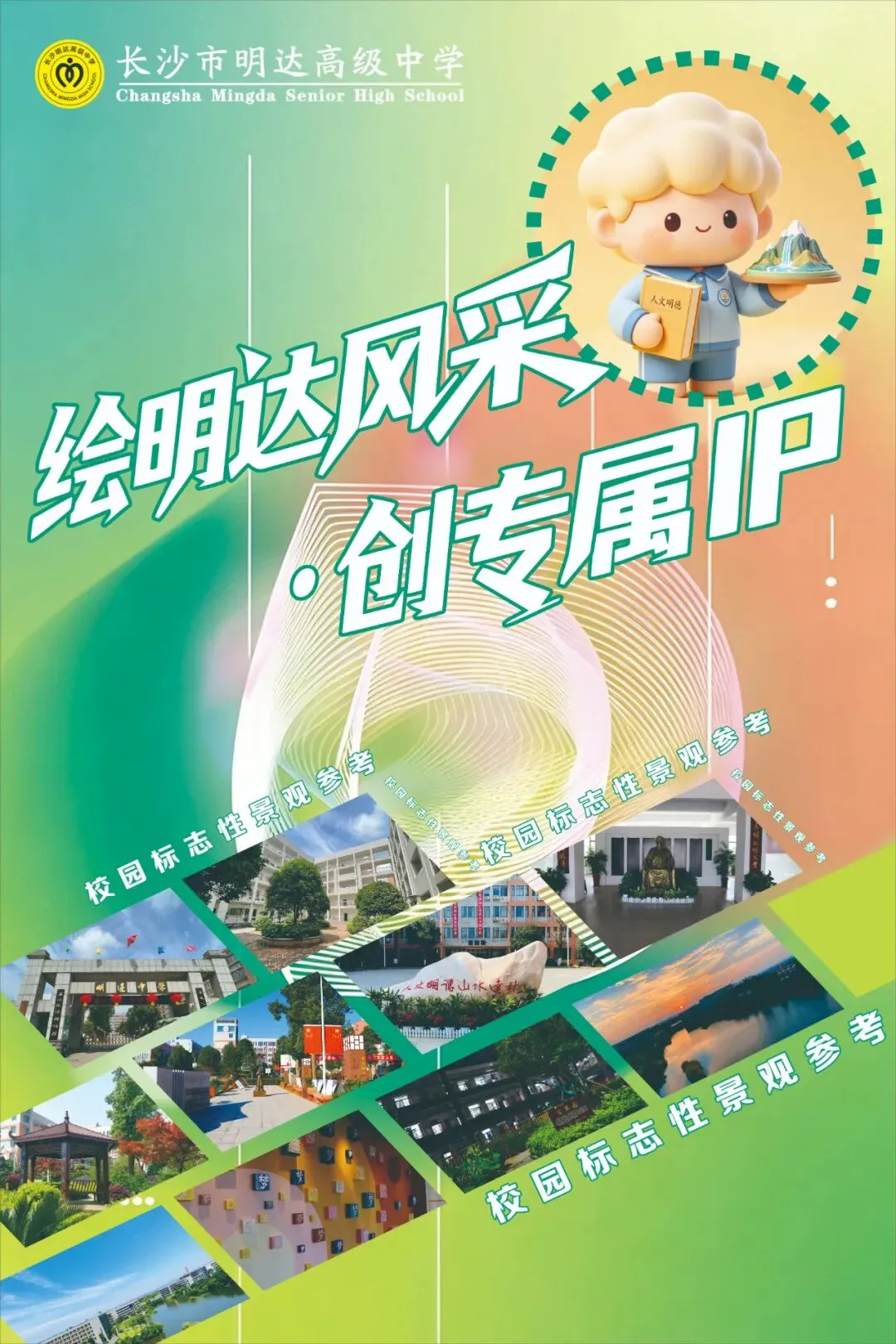 2.提炼明达专属文化符号,可结合校园标志性景观、办学精神、学子风貌等内容,让IP形象自带明达基因,一眼就能关联明达校园。