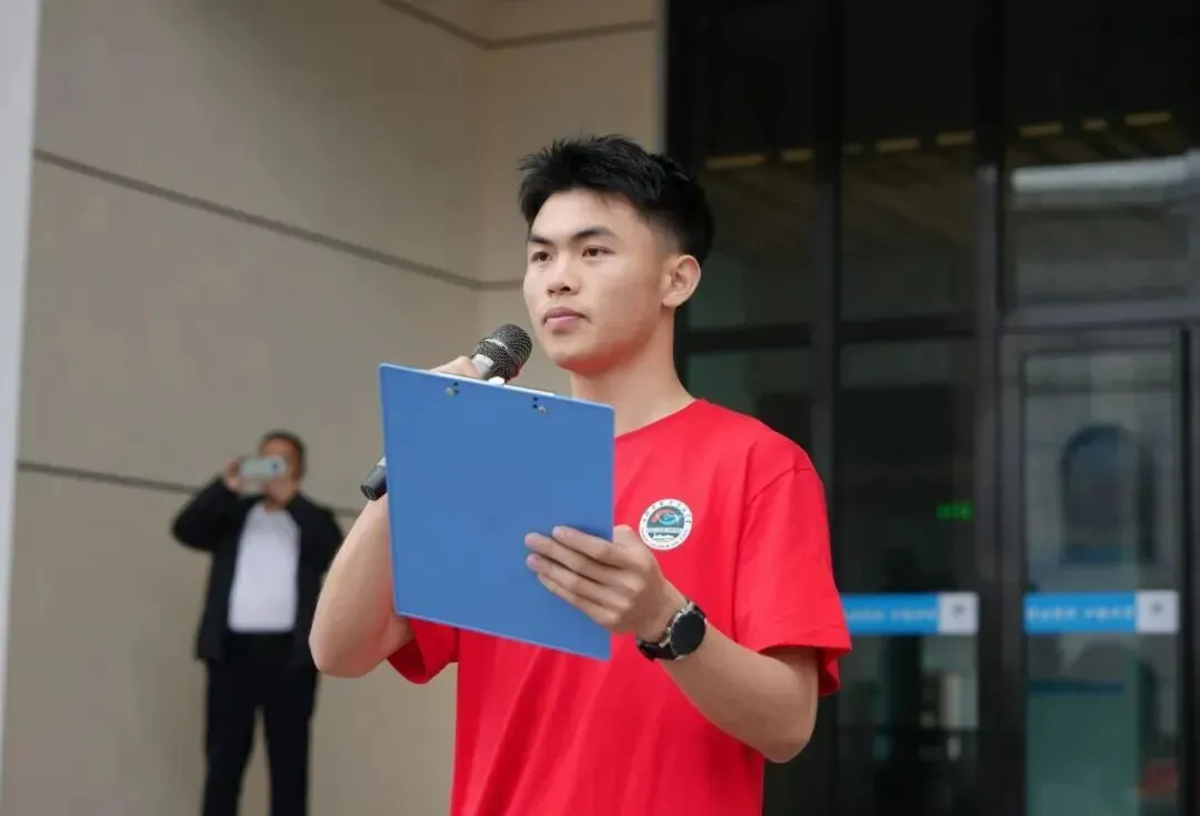 高三体育生代表唐锦洛动情讲述训练时光:从踏霜奔跑的清晨,到汗湿衣衫的白昼,每一份坚持都藏着不服输的倔强。他代表全体高三学子许下承诺:以最佳状态迎战,以拼搏姿态圆梦!