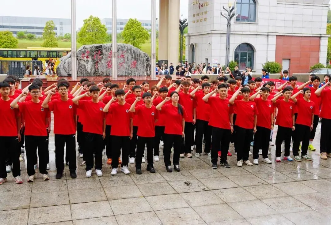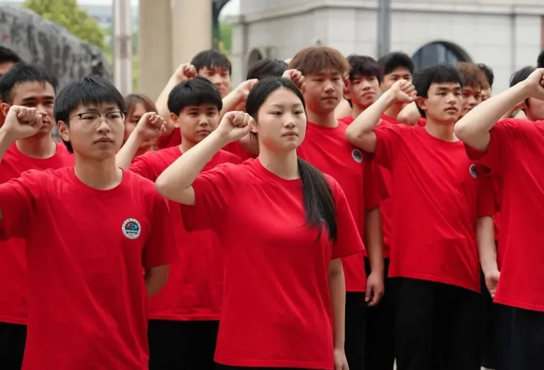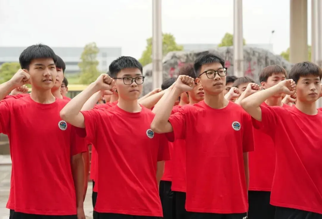 在高复代表张弛的带领下,全体体考学子高举右拳、庄严宣誓。铿锵誓言响彻校园,饱含着破釜沉舟的决心、必胜的信念,彰显麓高体育少年的热血与担当!