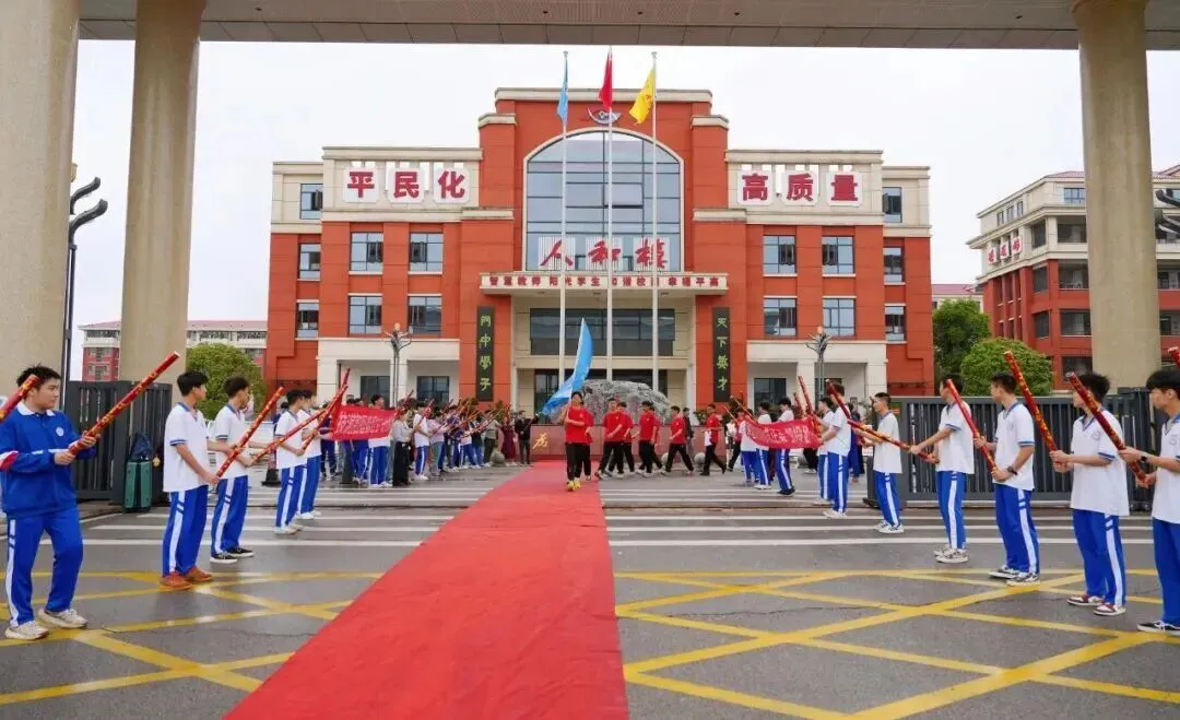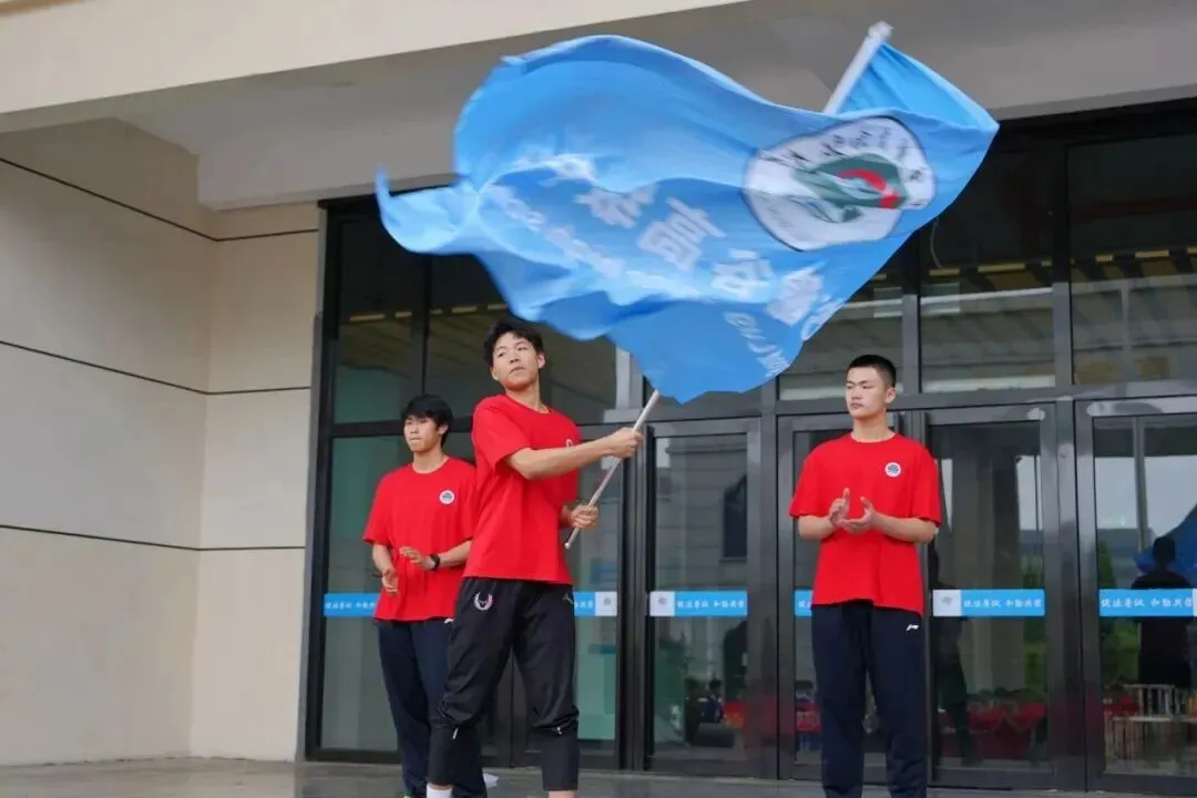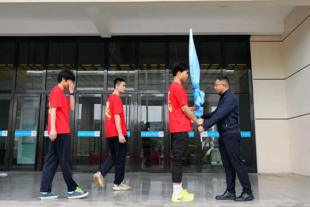 随后,喻校长亲手将出征战旗授予学生代表。旗帜高扬,承载母校重托;迎风挥舞,宣告出征决心!这一面战旗,是力量,是期盼,更是麓高体育人永不言败的精神象征!