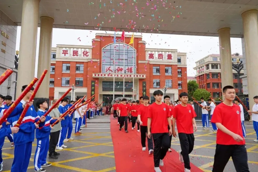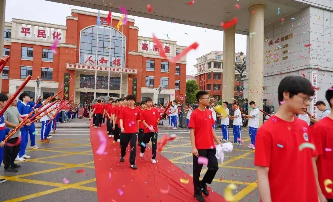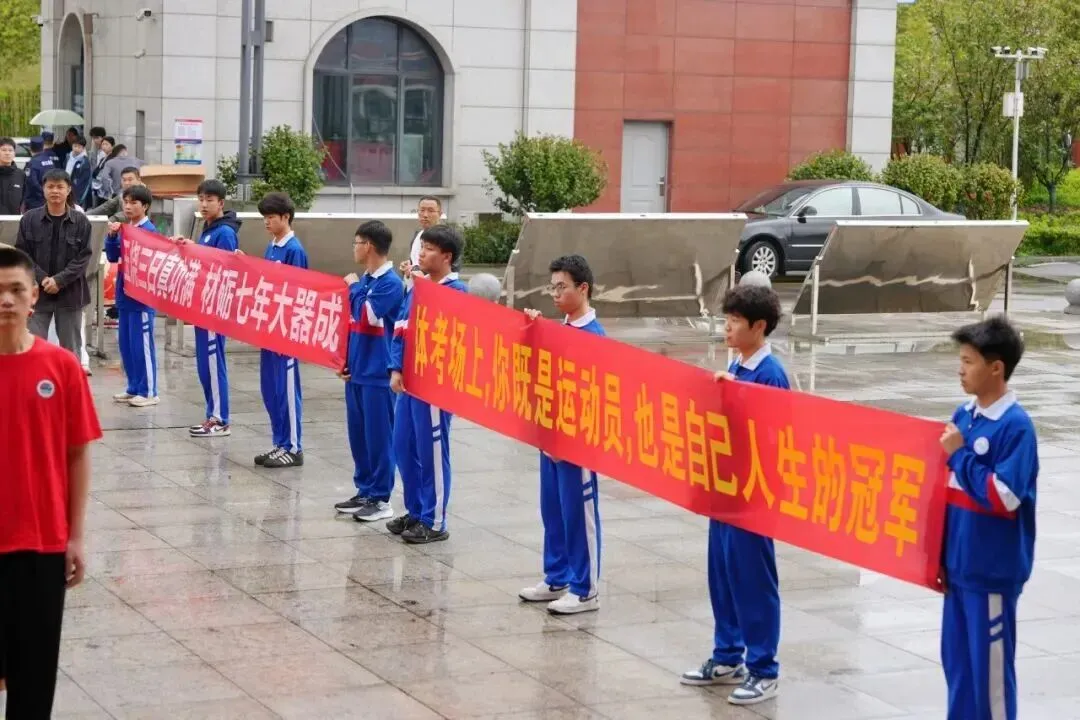 出征时刻,学弟学妹列队欢送,礼花绽放、彩屑飞扬,“体考必胜,金榜题名” 的呐喊声此起彼伏,温暖而有力量。